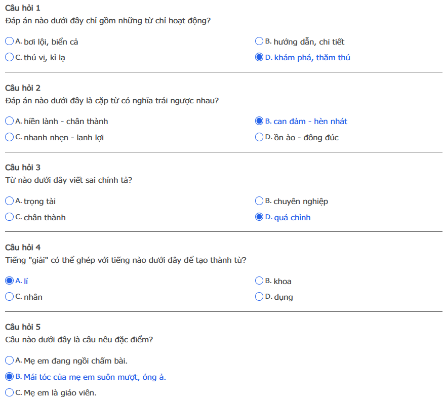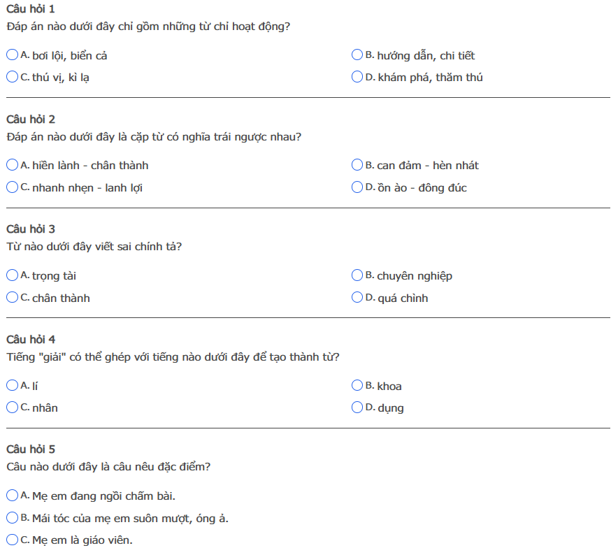 Bài thi: Vòng 5 (có đáp án) - Sân chơi Trạng Nguyên Tiếng Việt Khối 4 Năm học 2025 - 2026