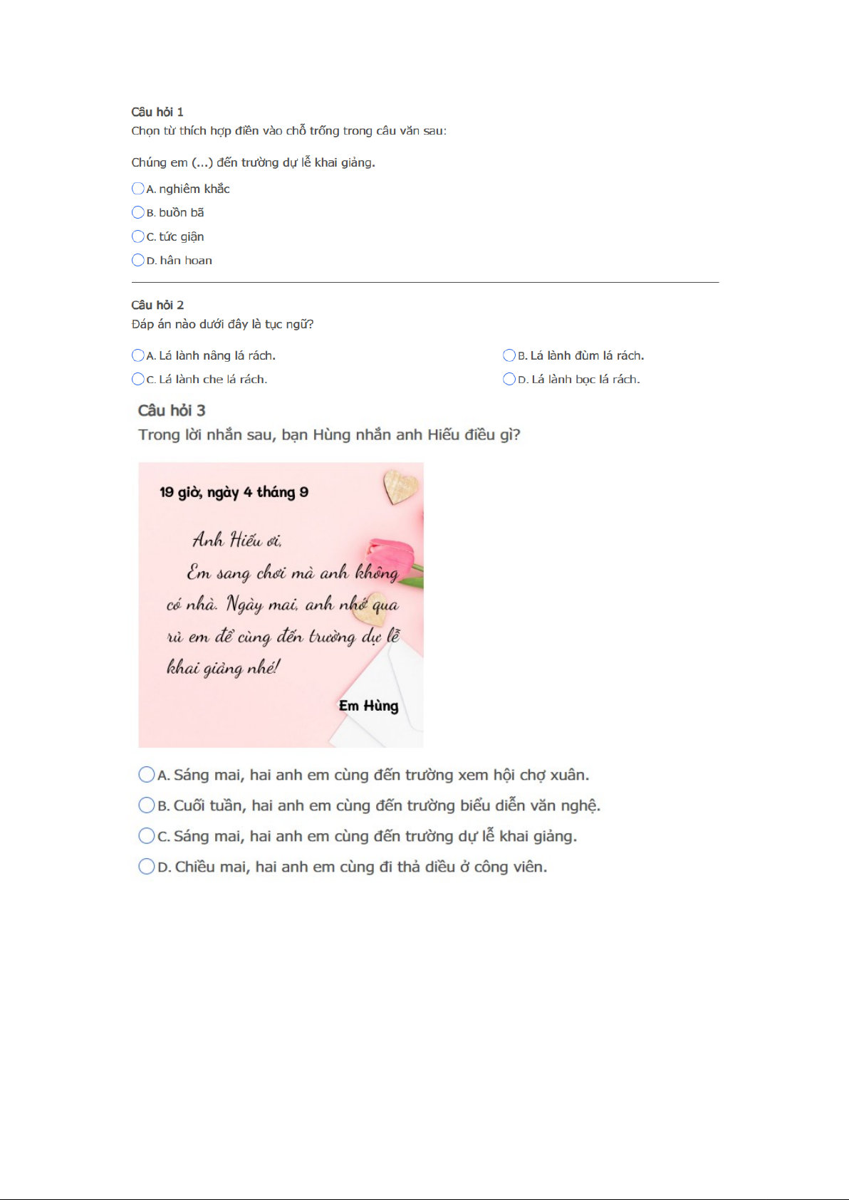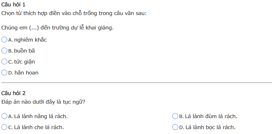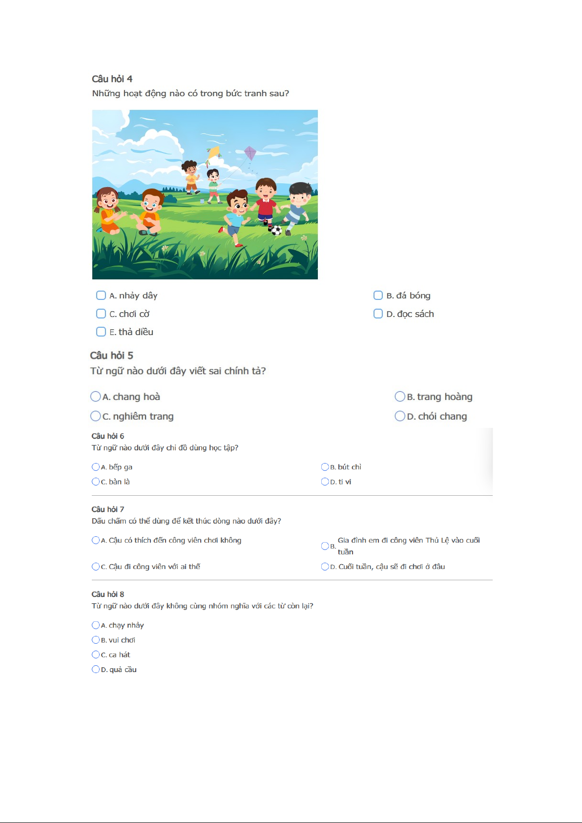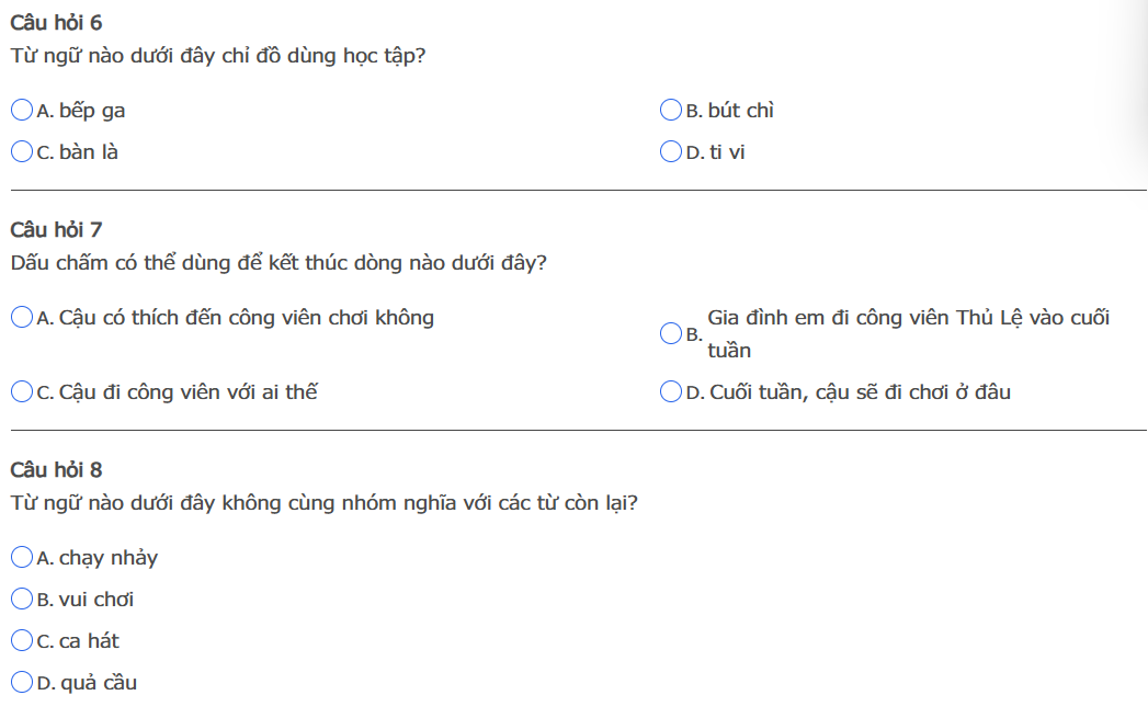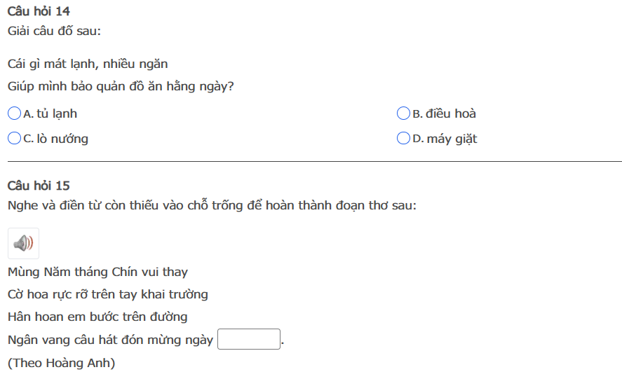 Bài thi : Vòng 1 (có đáp án) - Sân chơi Trạng Nguyên Tiếng Việt Khối 2 Năm học 2025 - 2026