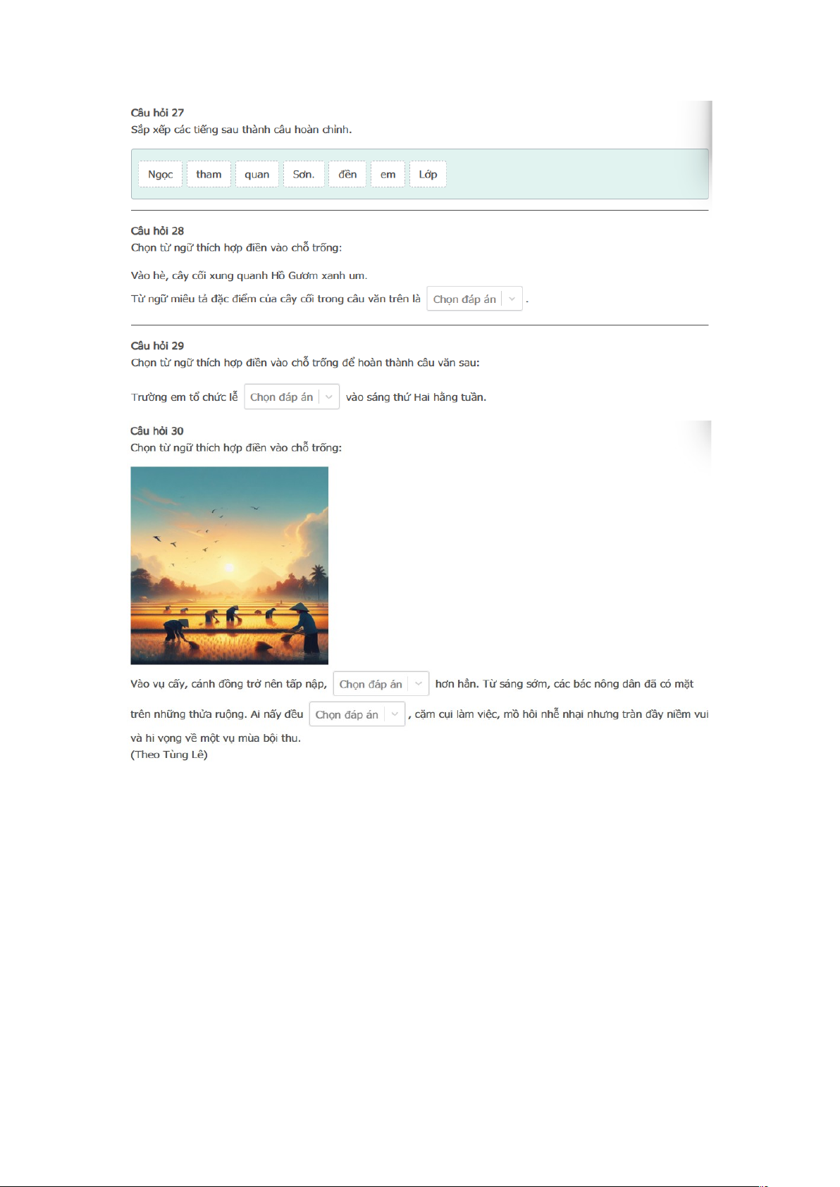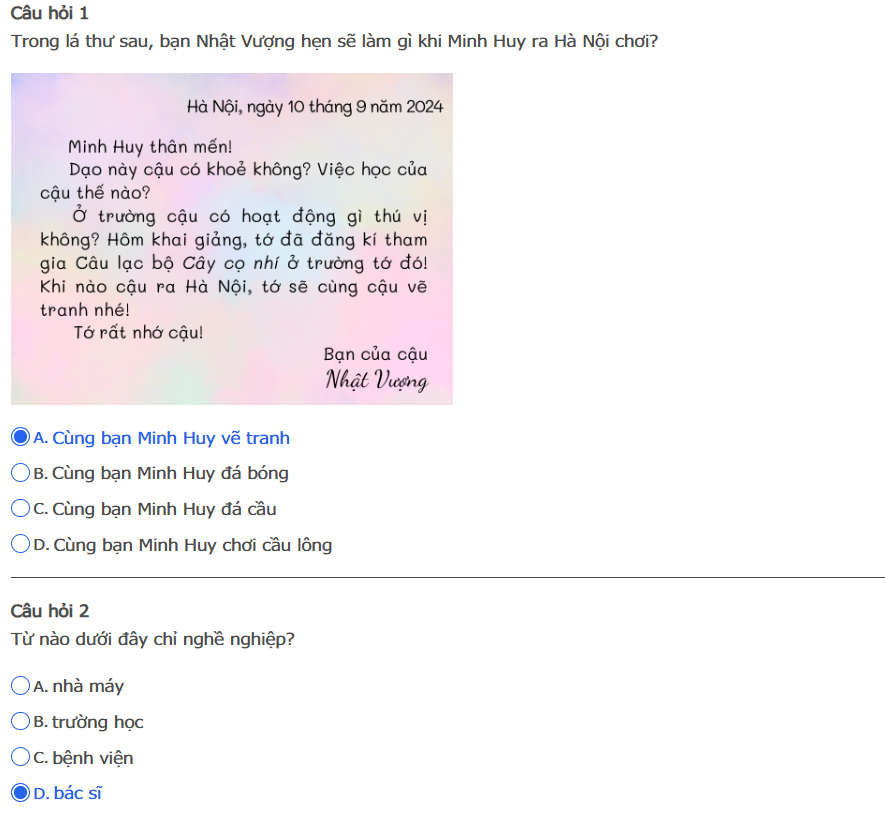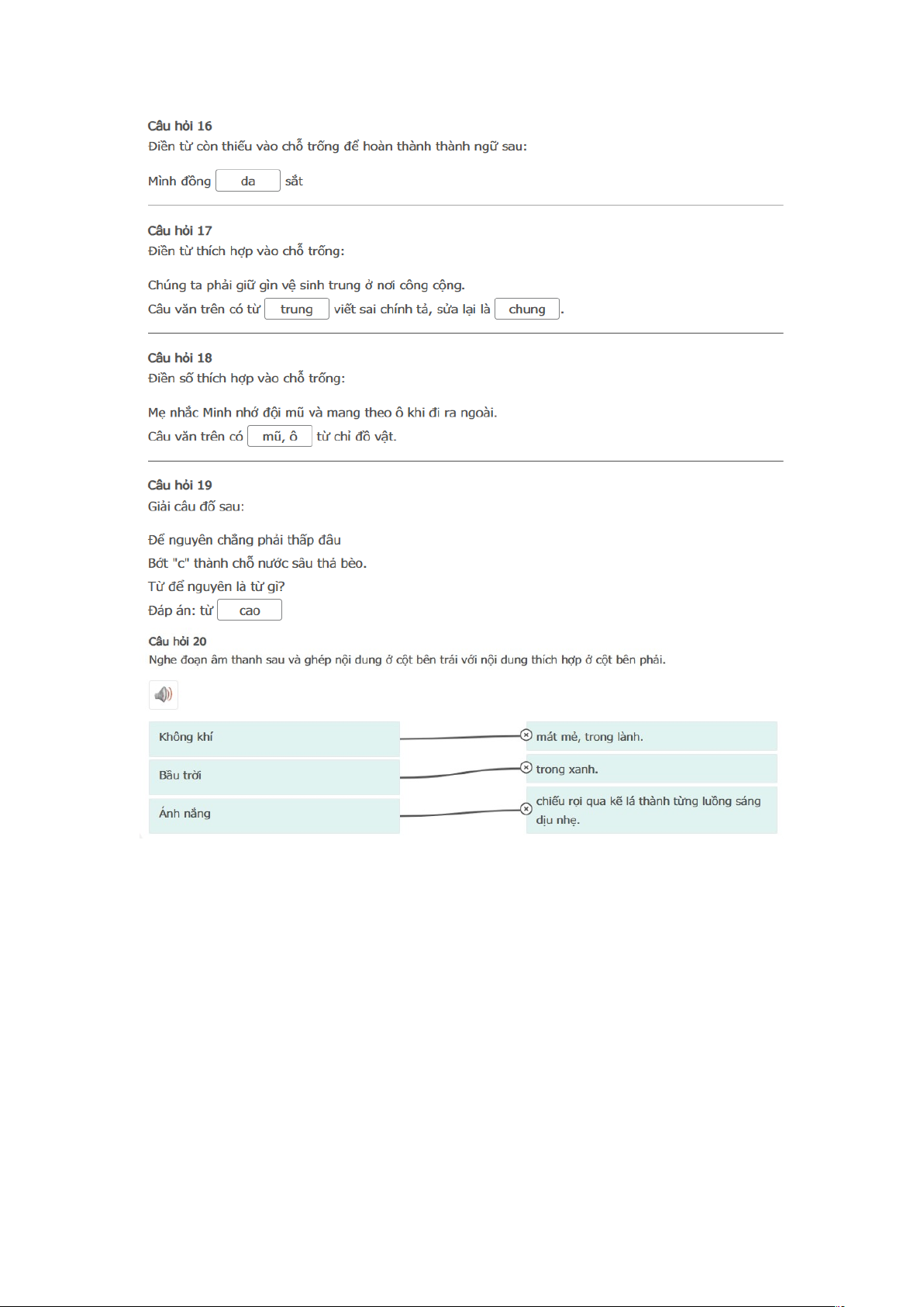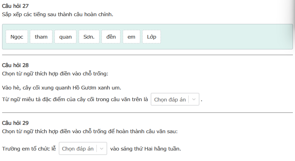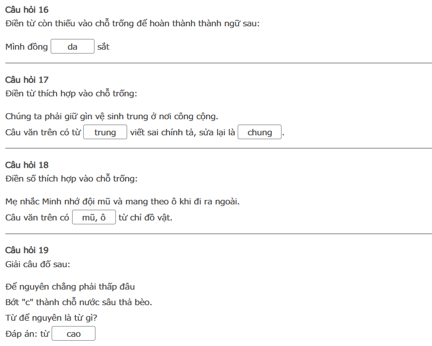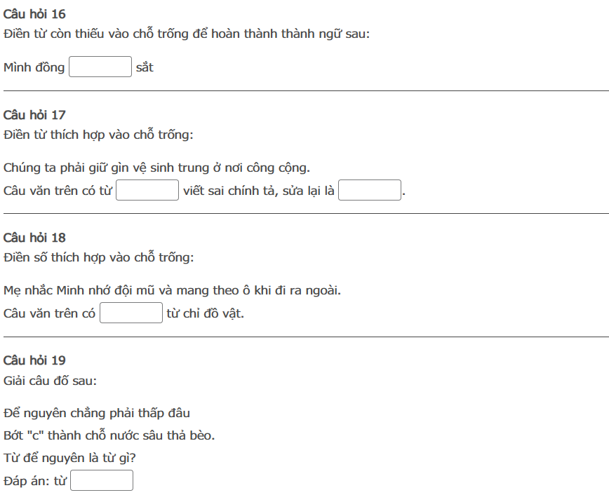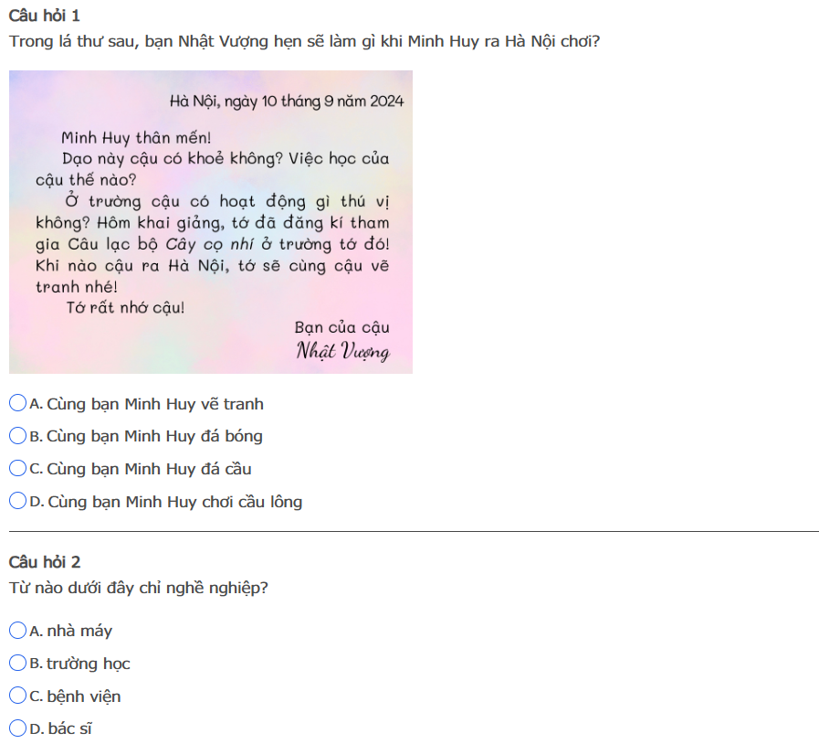 Bài thi : Vòng 1 (có đáp án) - Sân chơi Trạng Nguyên Tiếng Việt Khối 2 Năm học 2025 - 2026
