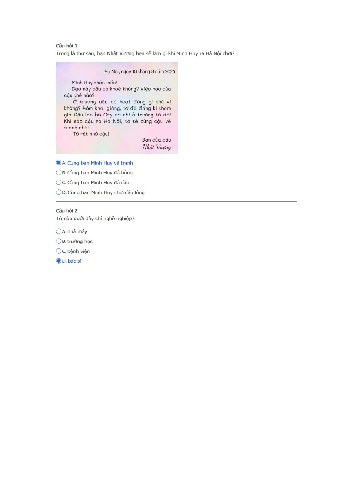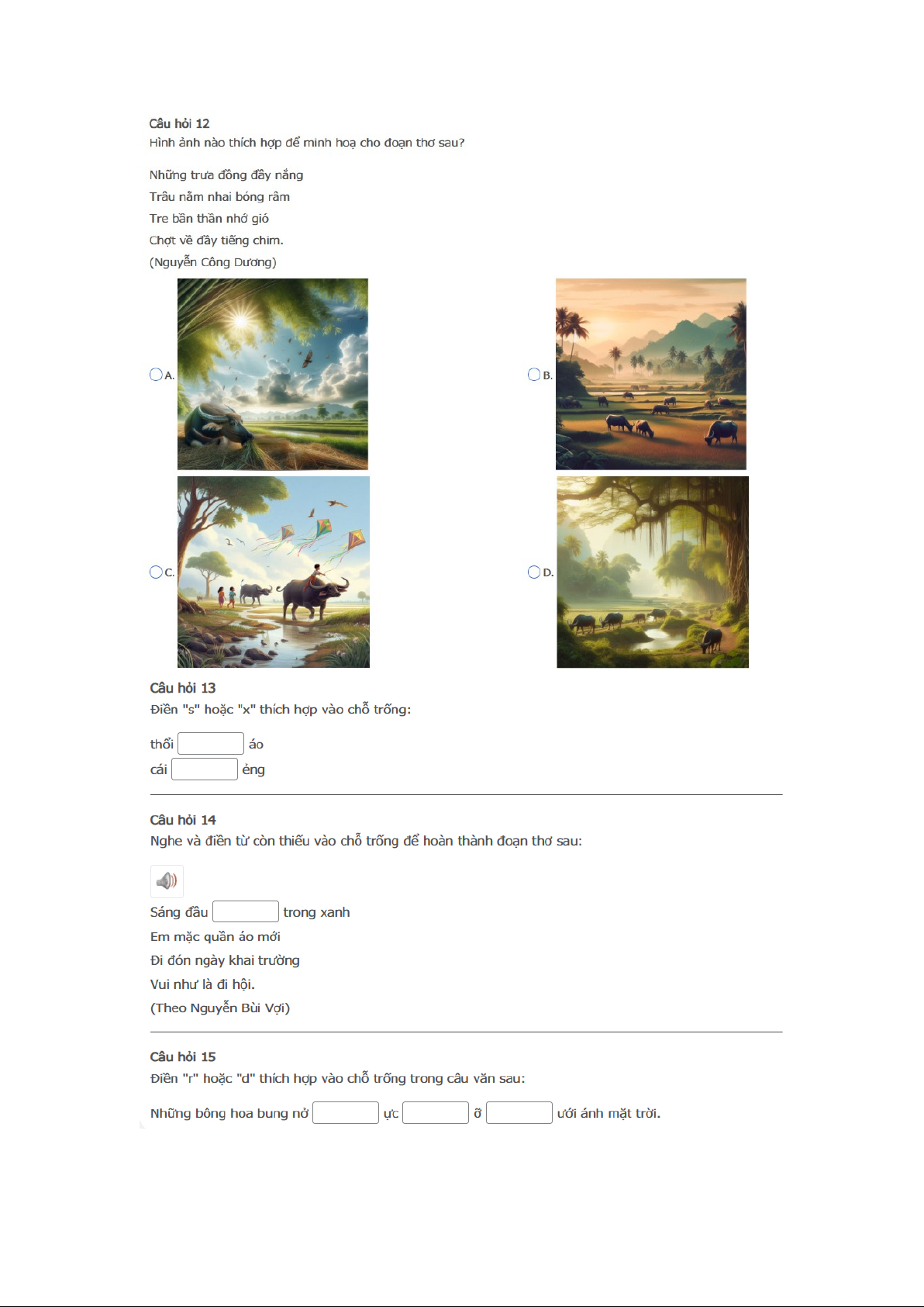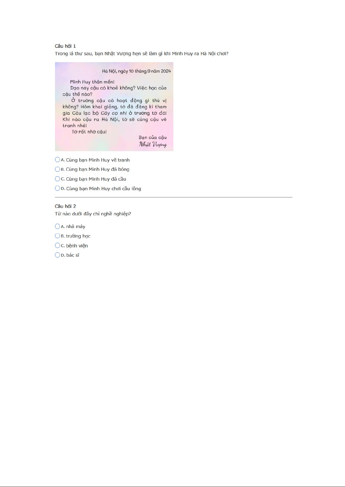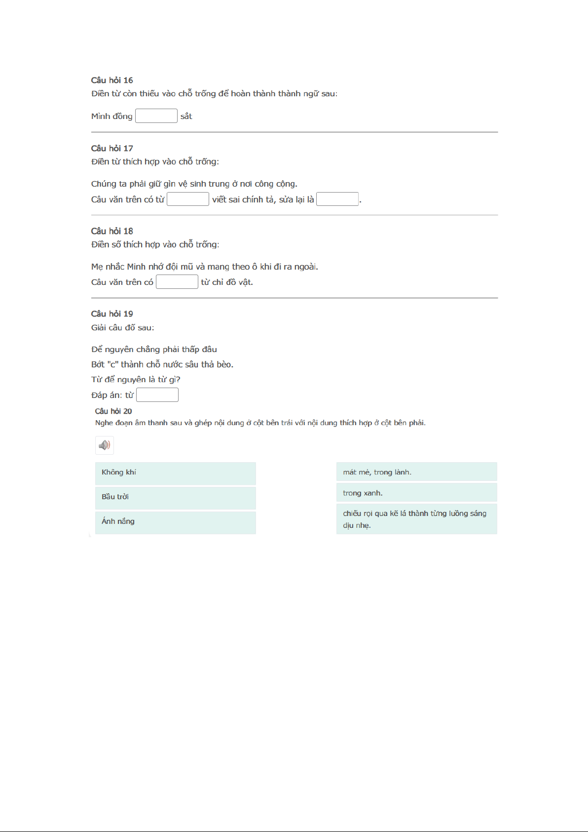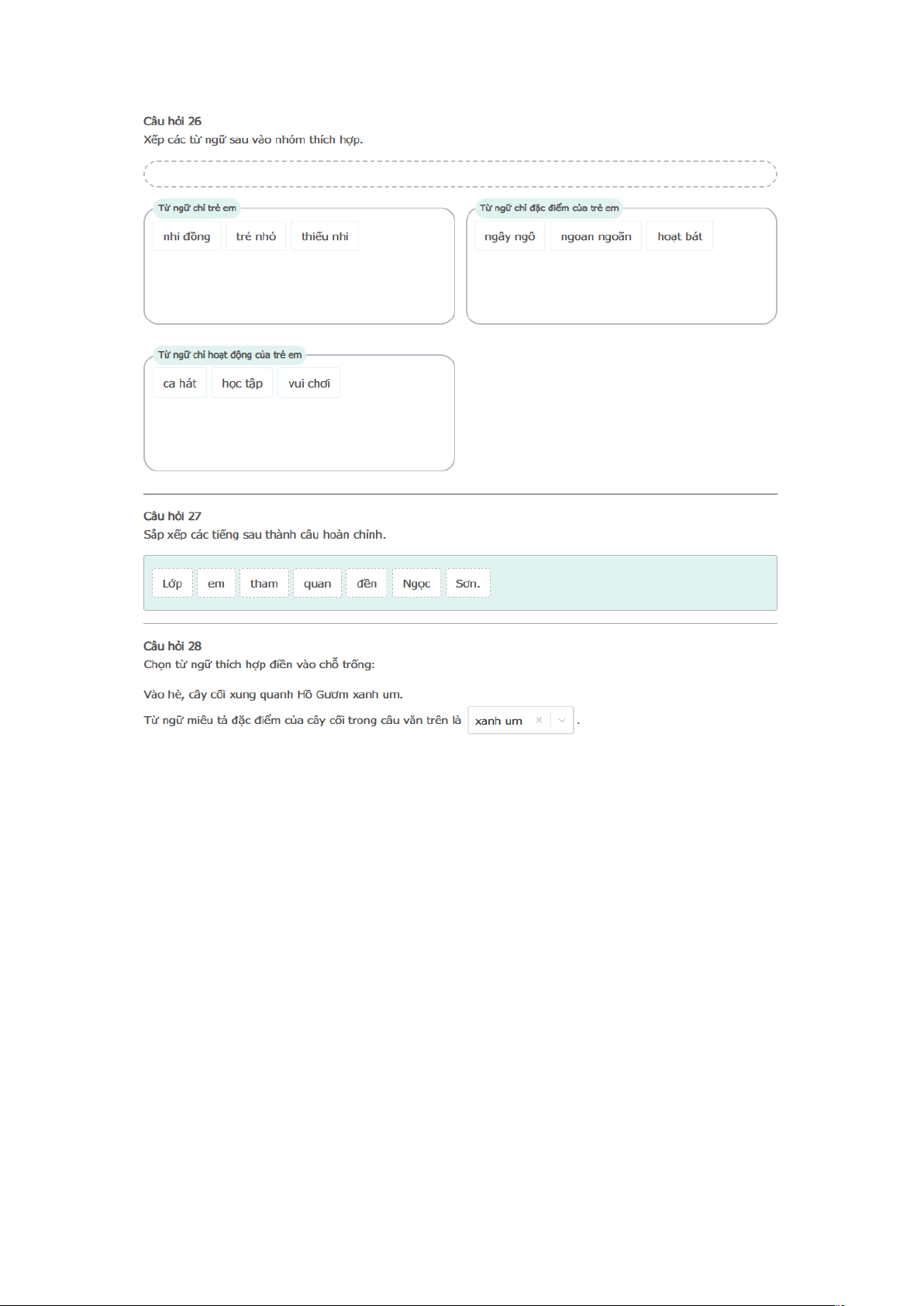Bài thi : Vòng 1 (có đáp án) - Sân chơi Trạng Nguyên Tiếng Việt Khối 2 Năm học 2025 - 2026