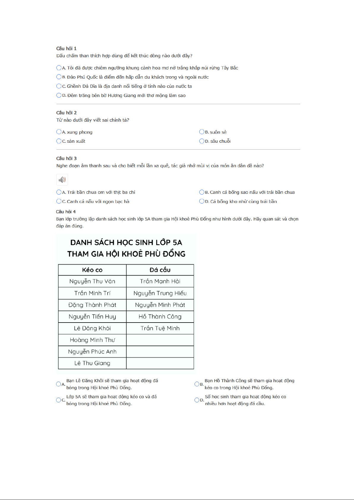 Bài thi: Vòng 1 (có đáp án) Sân chơi Trạng Nguyên Tiếng Việt Khối 5 Năm học 2025 - 2026