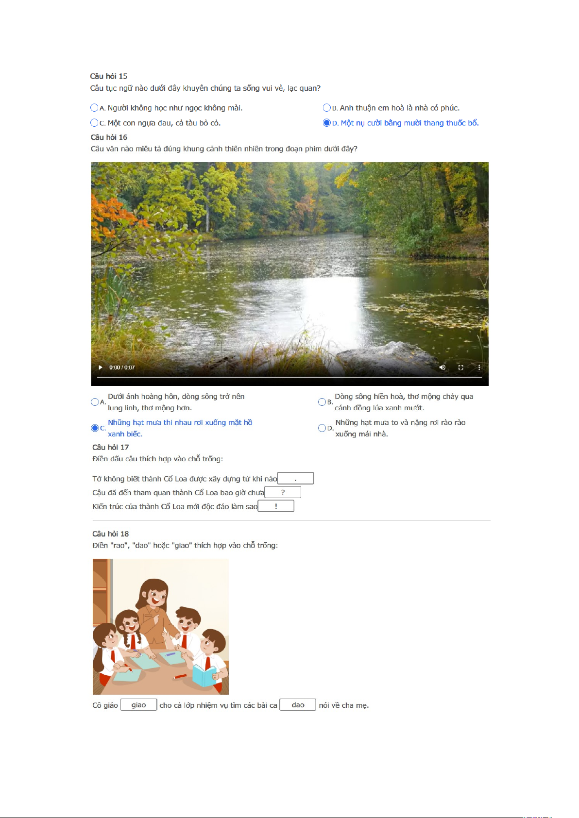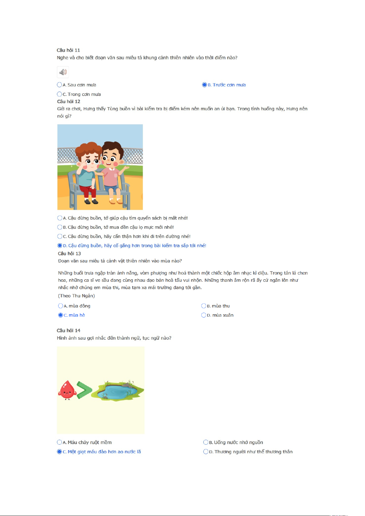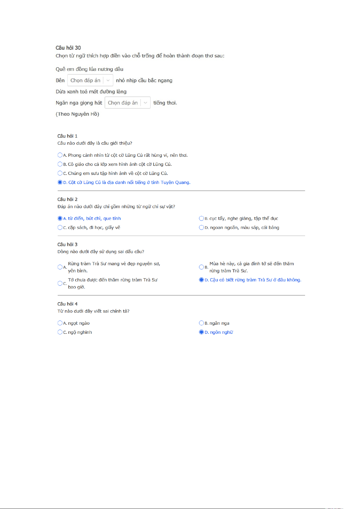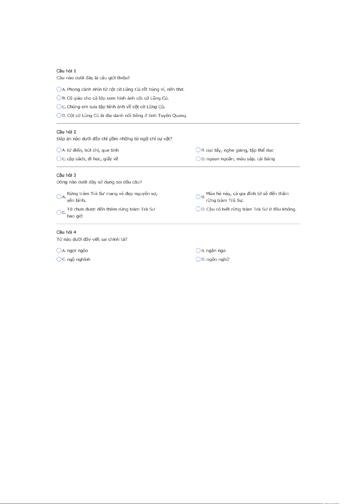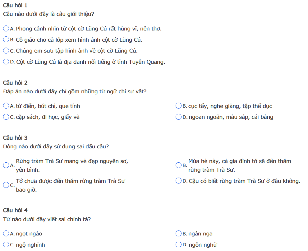 Bài thi: Vòng 1 ( có đáp án ) - Sân chơi Trạng Nguyên Tiếng Việt Khối 3 Năm học 2025 - 2026