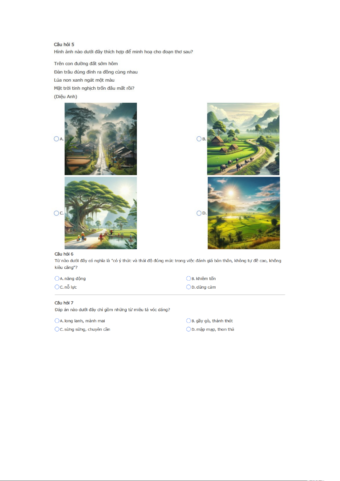 Bài thi: Vòng 5 ( có đáp án ) - Sân chơi Trạng Nguyên Tiếng Việt Khối 3 Năm học 2025 - 2026
