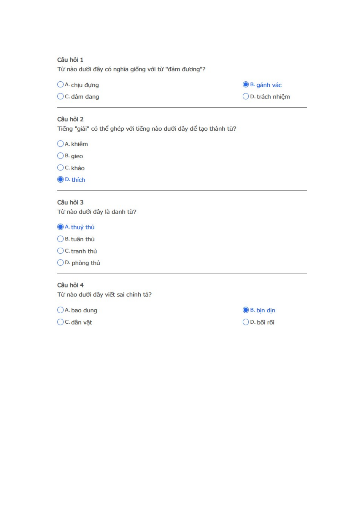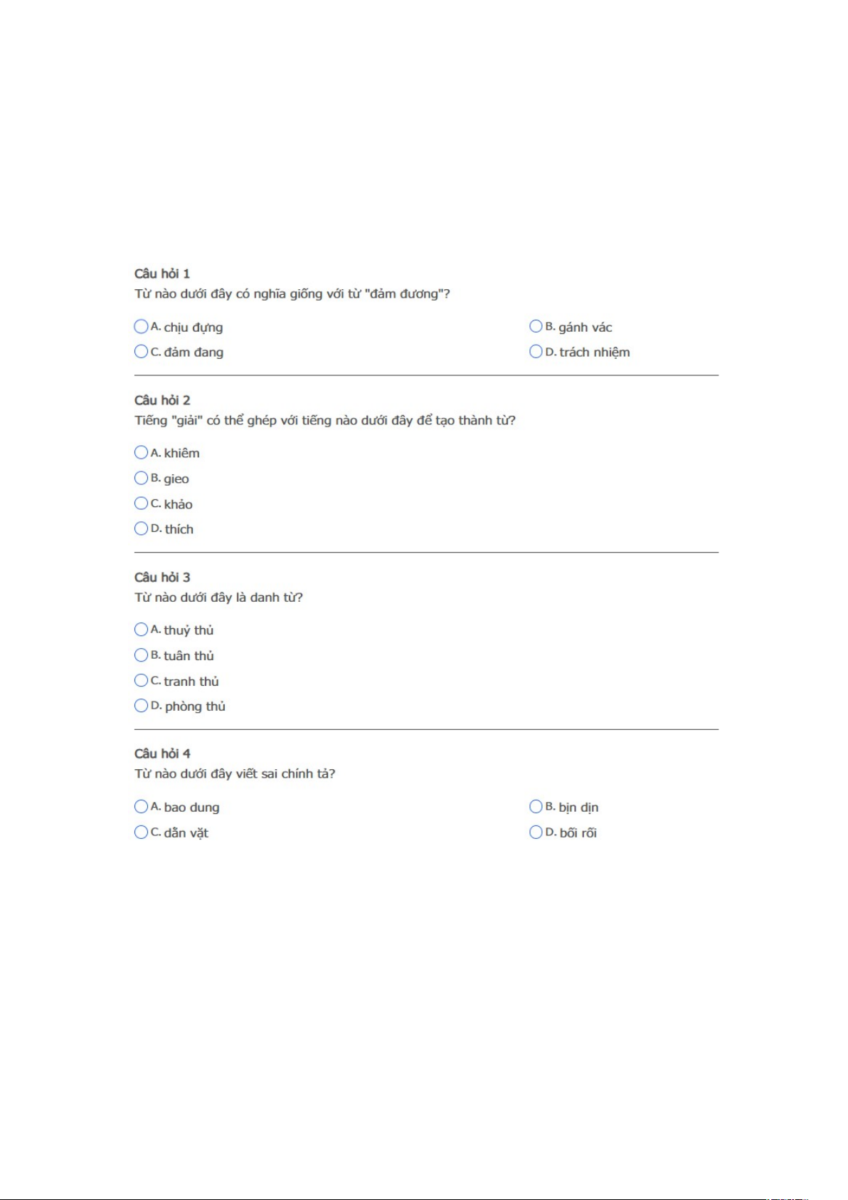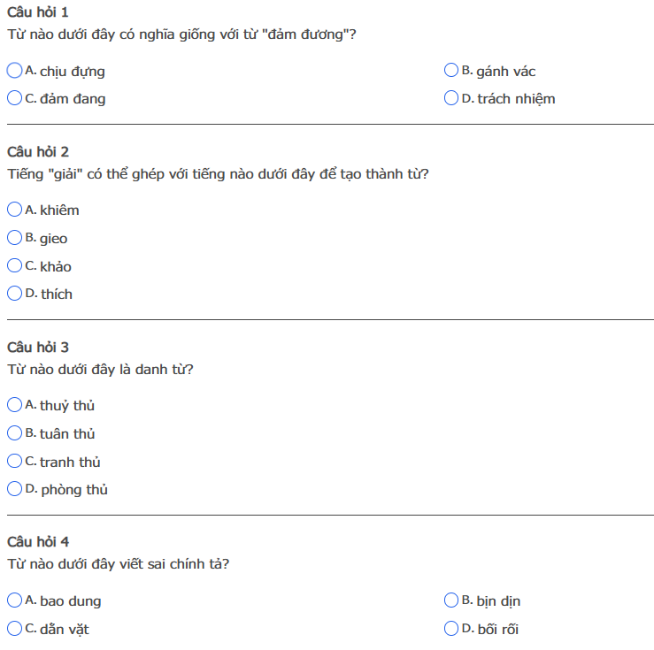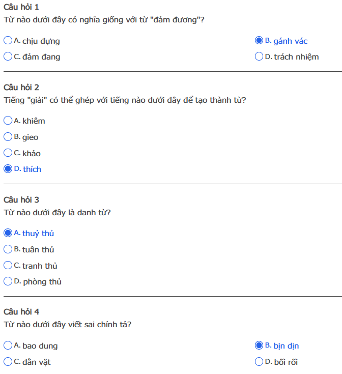 Bài thi: Vòng 1 (có đáp án) - Sân chơi Trạng Nguyên Tiếng Việt Khối 4 Năm học 2025 - 2026