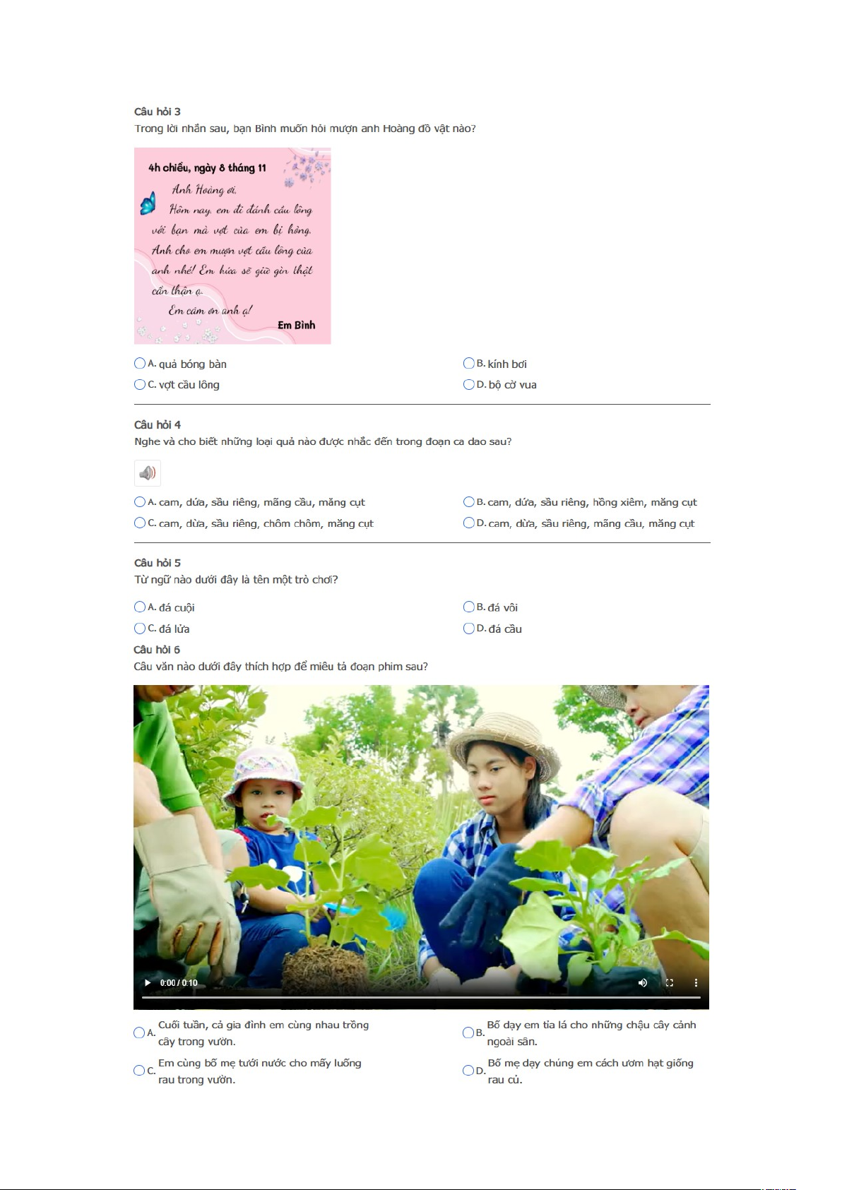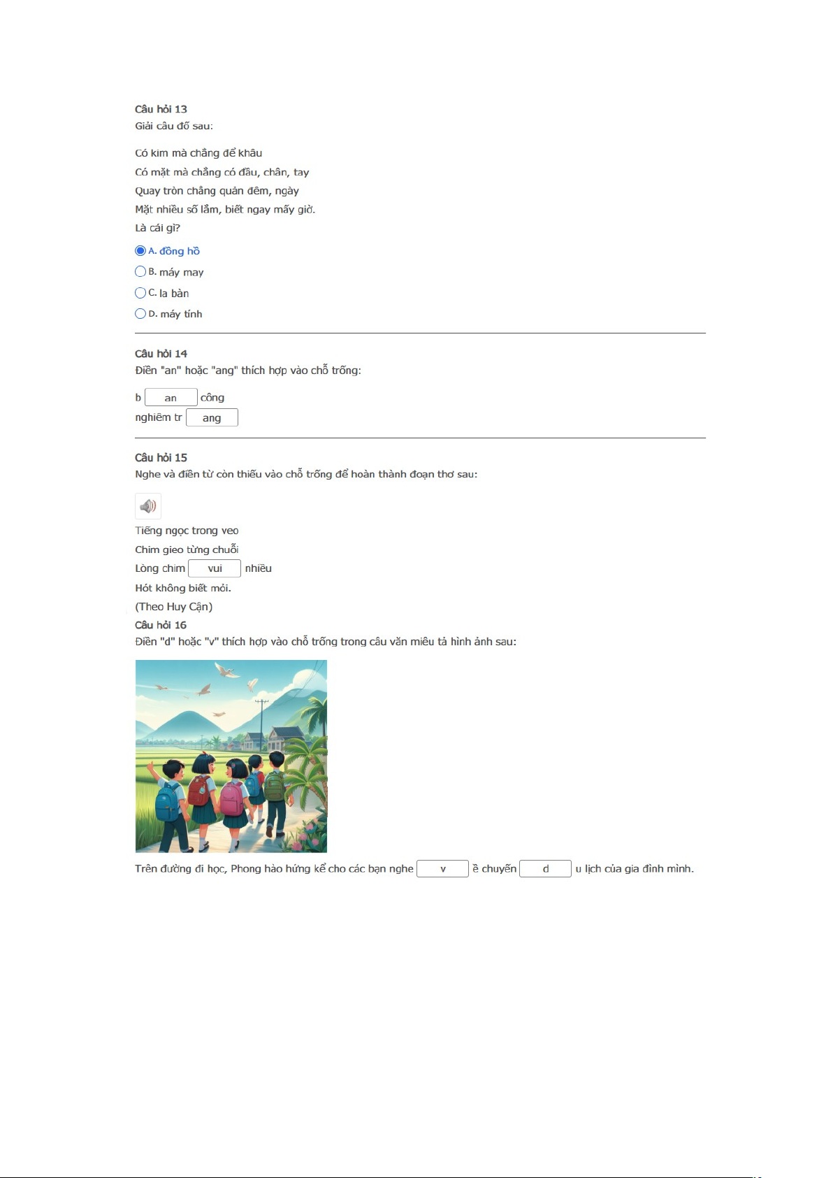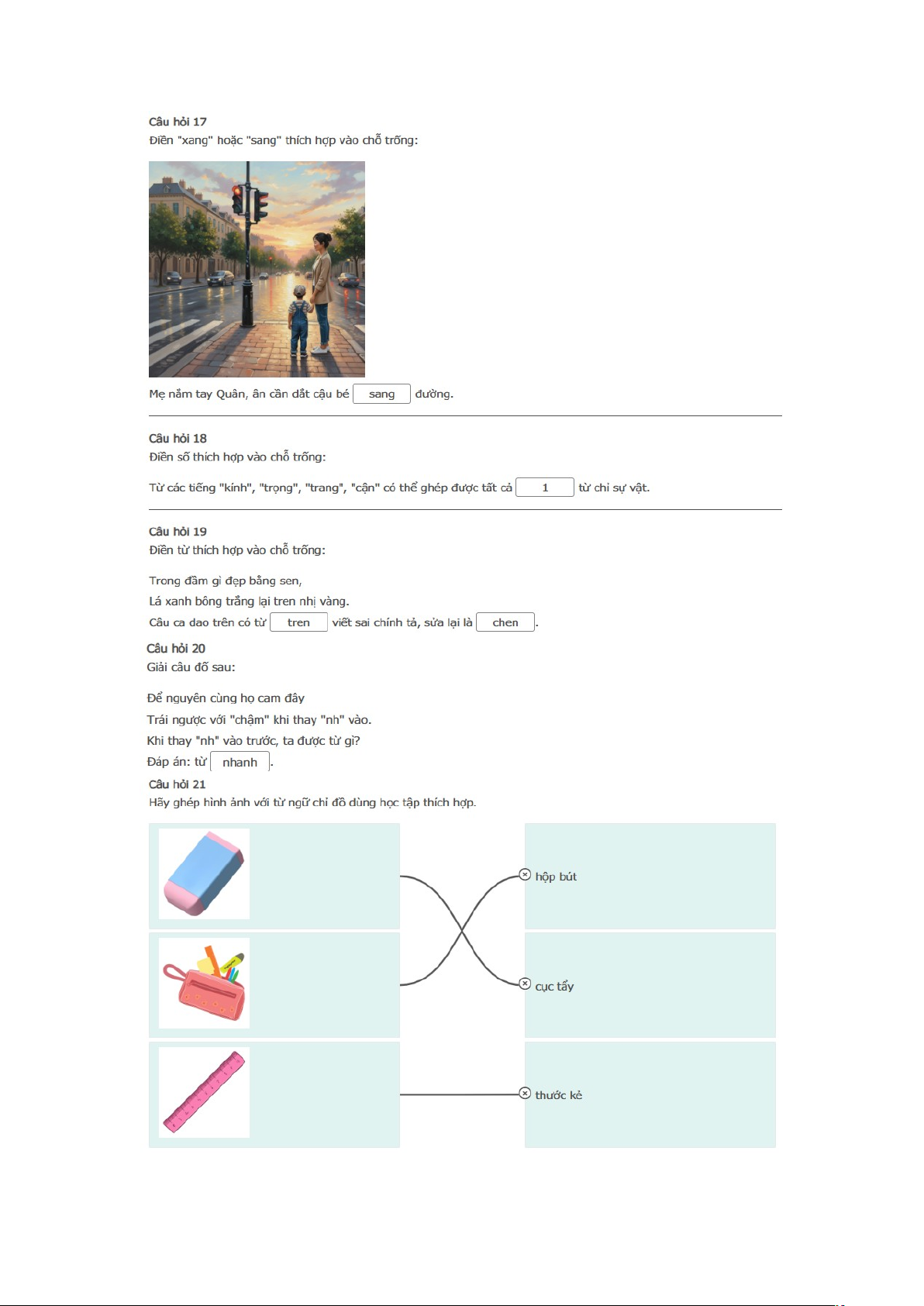 Bài thi: Vòng 6 ( có đáp án) - Sân chơi Trạng Nguyên Tiếng Việt Khối 2 Năm học 2025 - 2026.