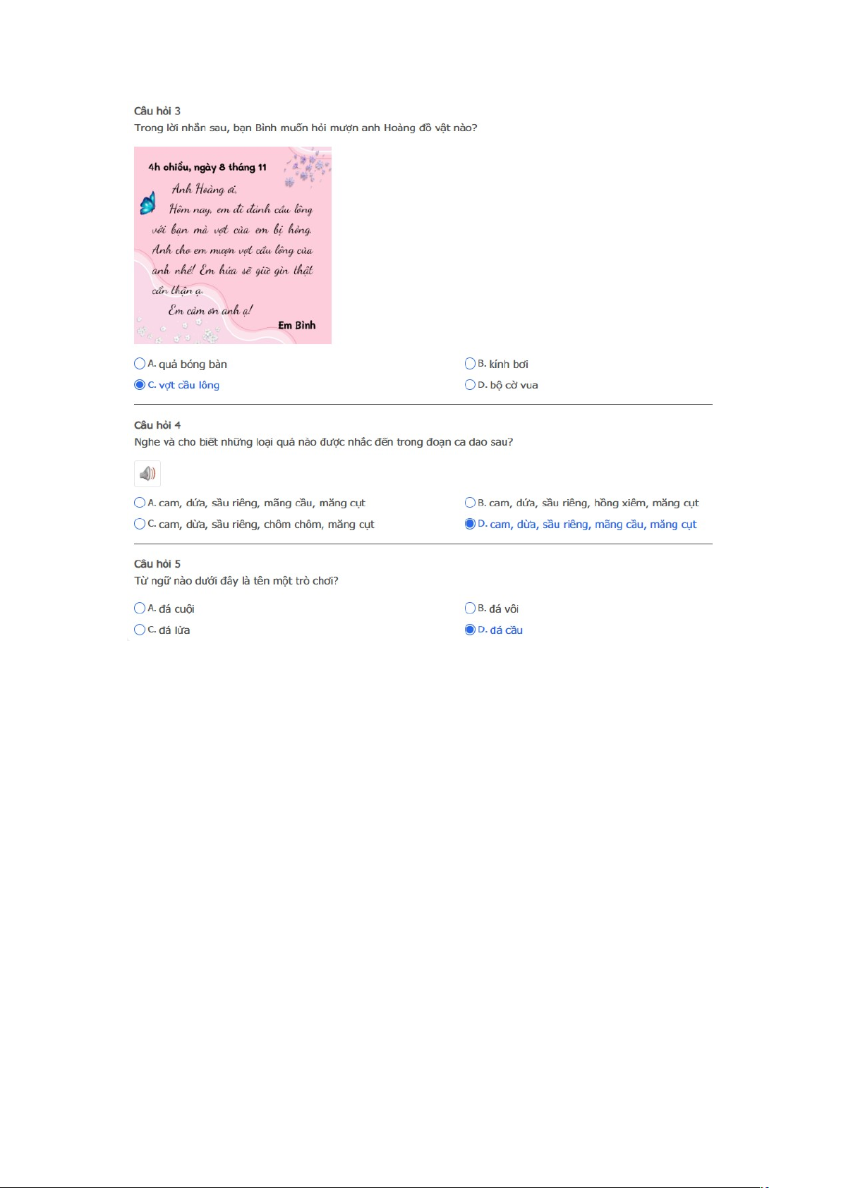 Bài thi: Vòng 5 (có đáp án) - Sân chơi Trạng Nguyên Tiếng Việt Khối 2 Năm học 2025 - 2026
