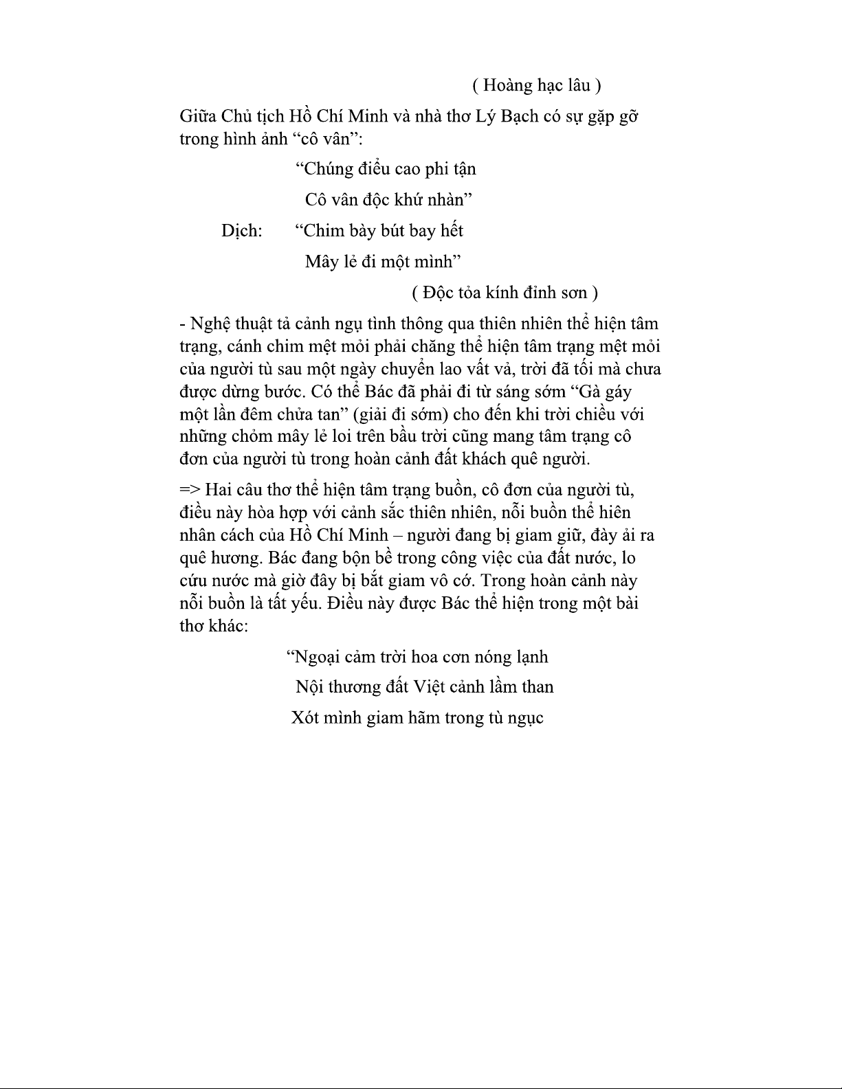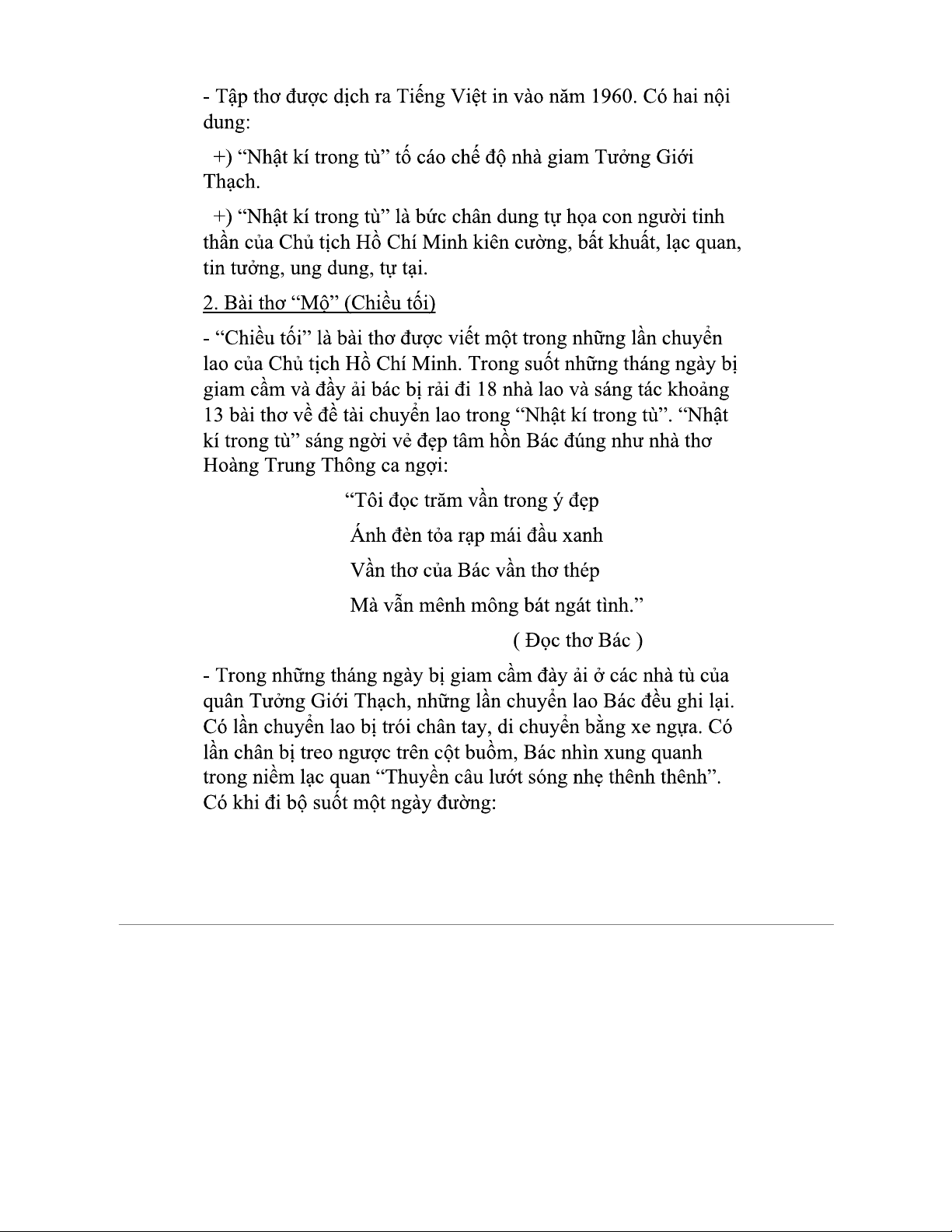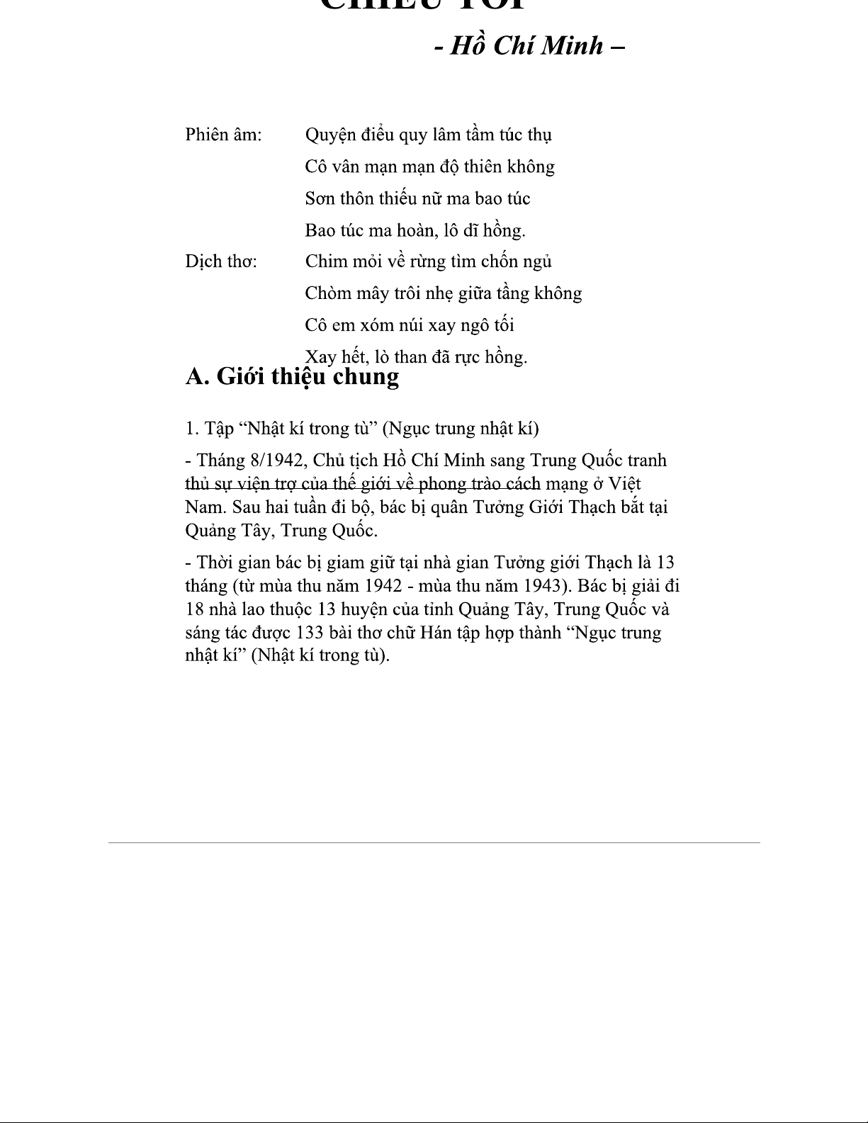 Bài thơ "Chiều Tối" trong tập "Nhật Kí Trong Tù" của Hồ Chí Minh