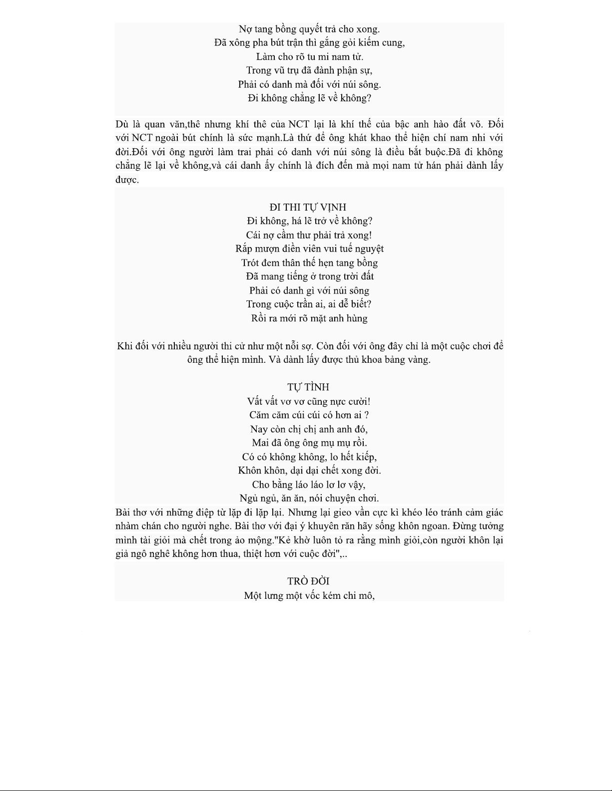 BÀI THƠ NGUYỄN CÔNG TRỨ VÀ TÂM HƯỚNG NAM NHI