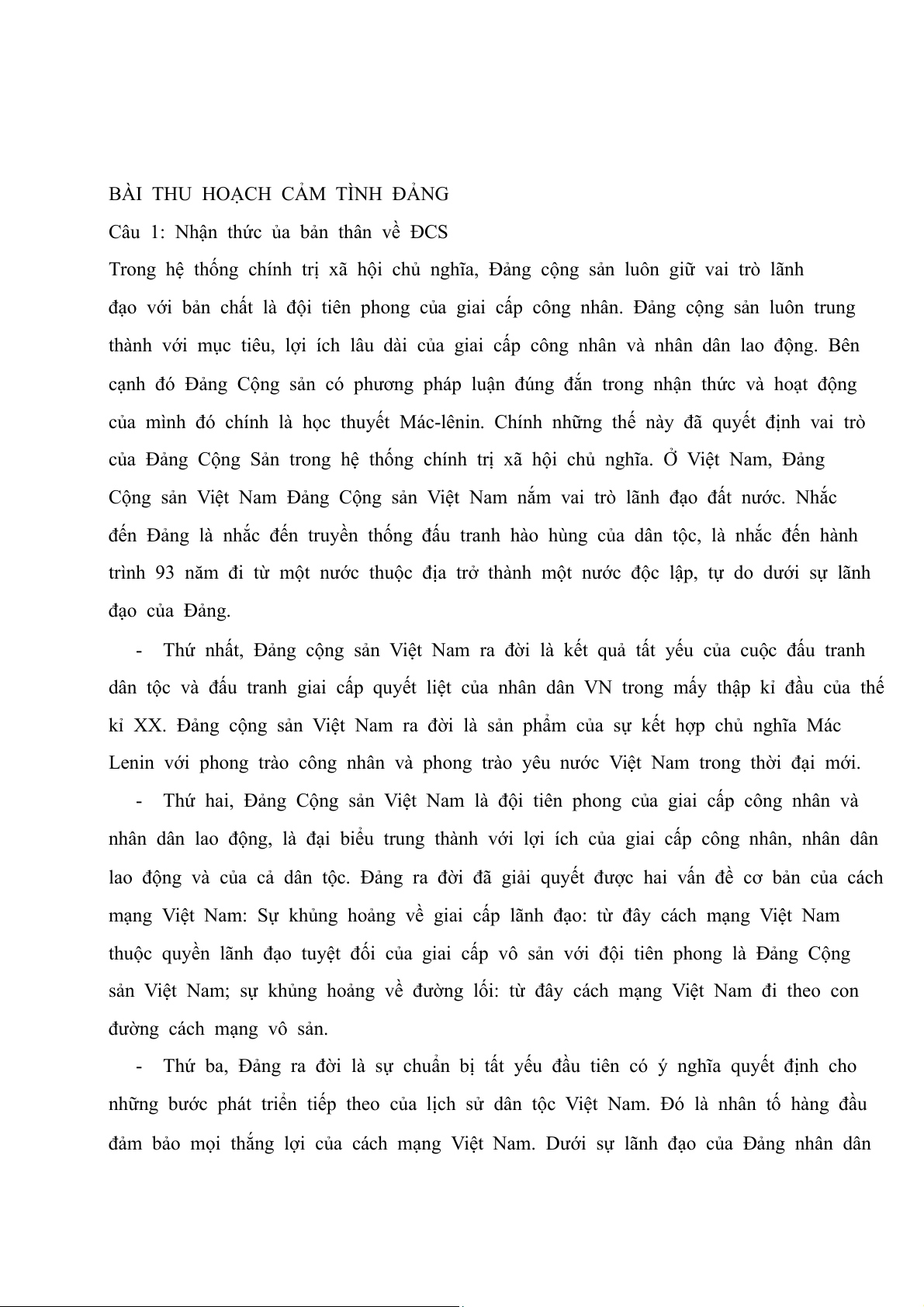 BÀI THU HOẠCH CẢM TÌNH ĐẢNG