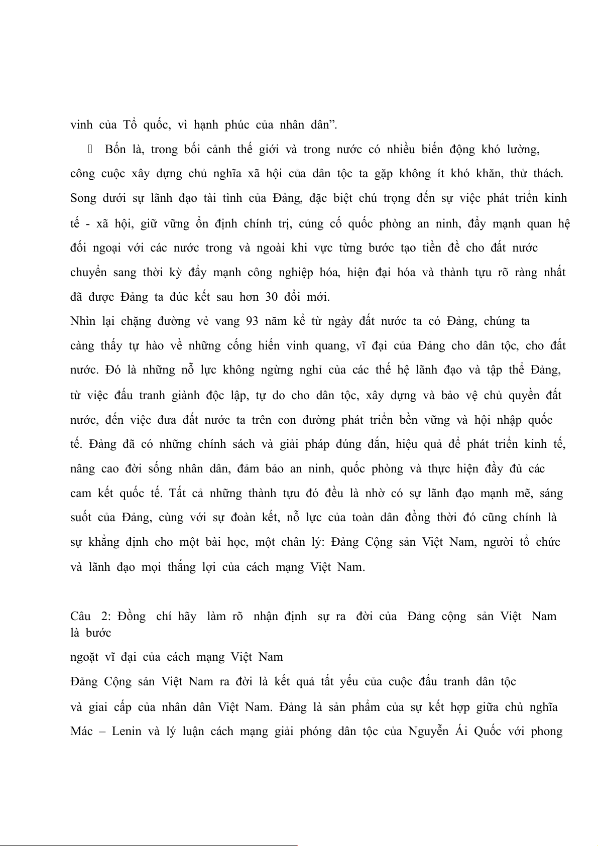 lao động và của cả dân tộc. Đảng ra đời đã giải quyết được hai vấn đề cơ bản của cách