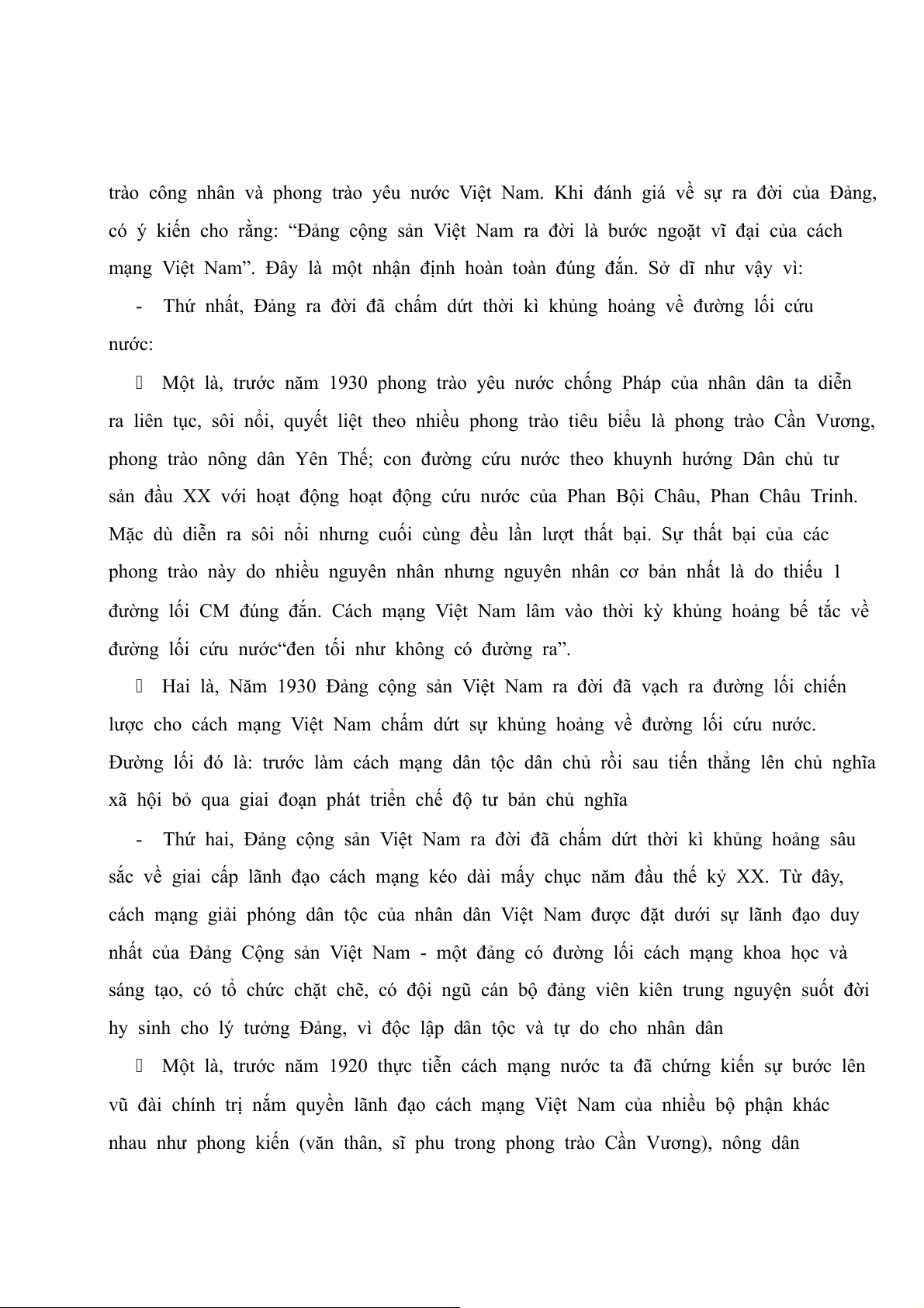 - Thứ hai, Đảng cộng sản Việt Nam ra đời đã chấm dứt thời kì khủng hoảng sâu