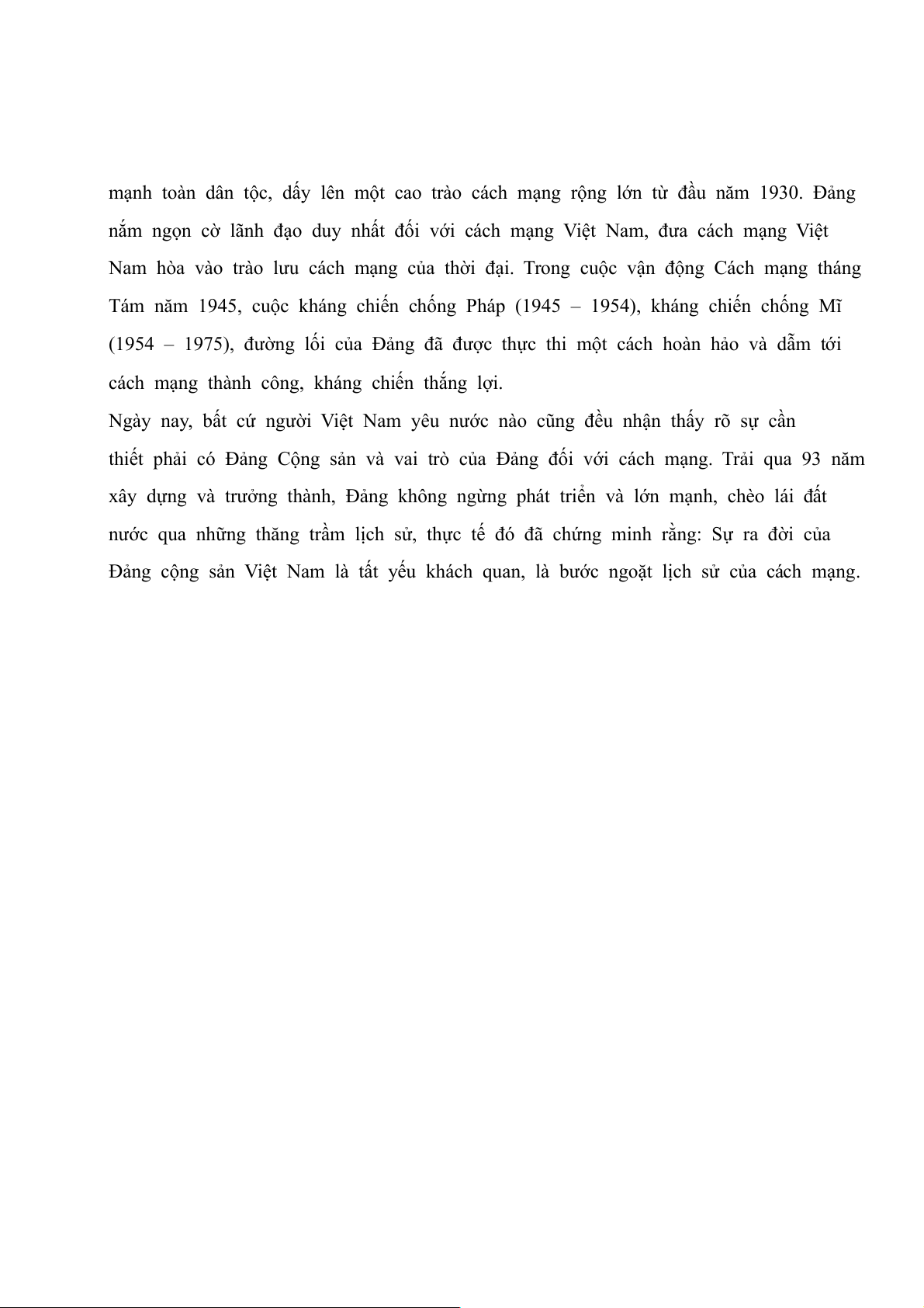 thiết phải có Đảng Cộng sản và vai trò của Đảng đối với cách mạng. Trải qua 93 năm