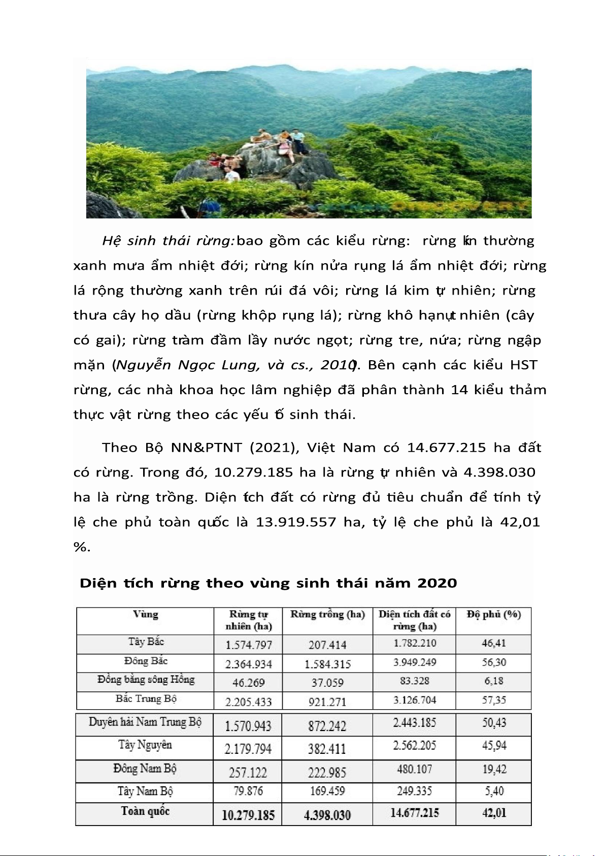(Bộ NN&PTNT, 2017). Hầu hết các hệ sinh thái quan trọng ở Việt Nam đều nằm
