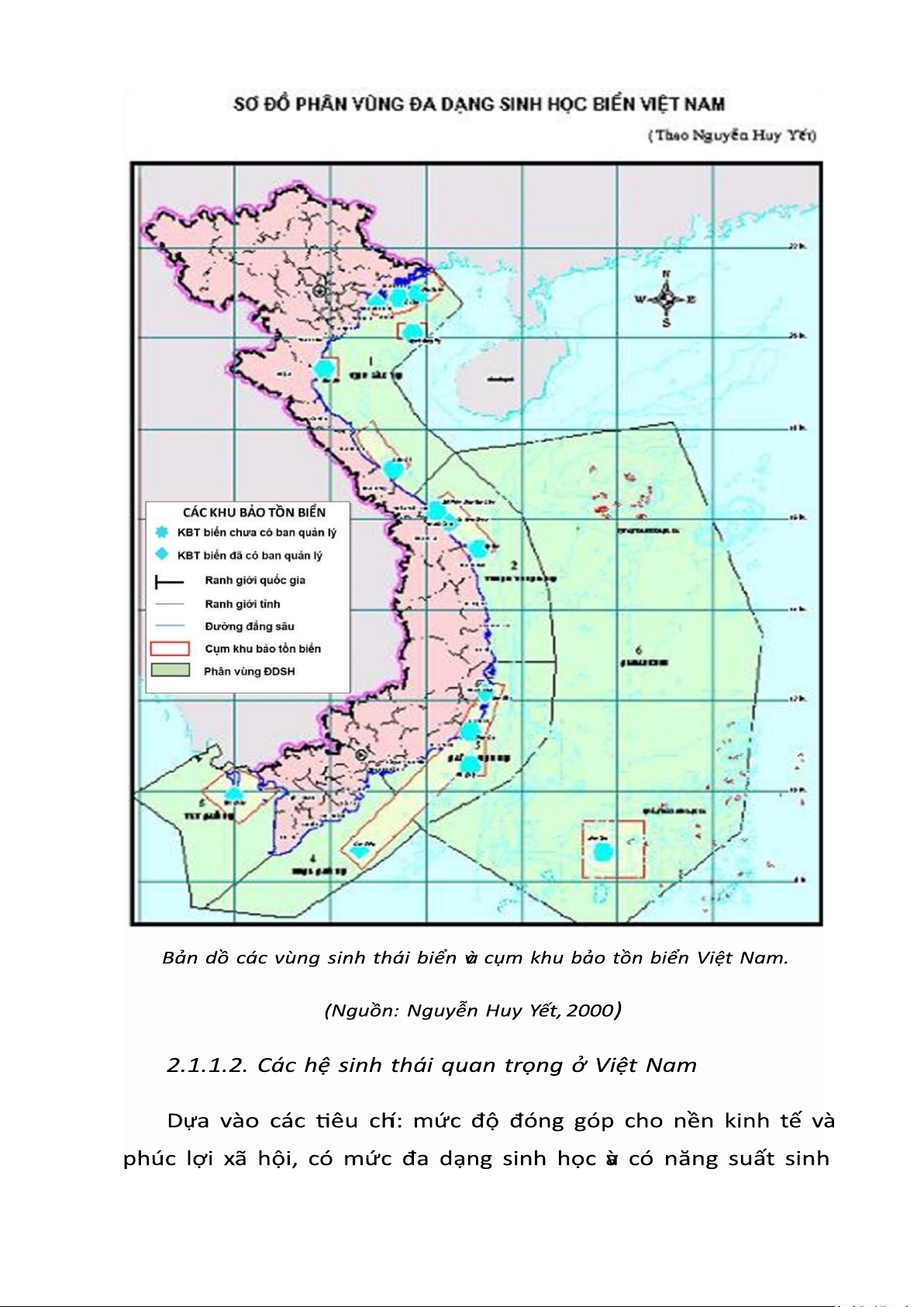 6 vùng sinh thái với các đặc trưng riêng về đa dạng sinh học, bao gồm: Vịnh Bắc