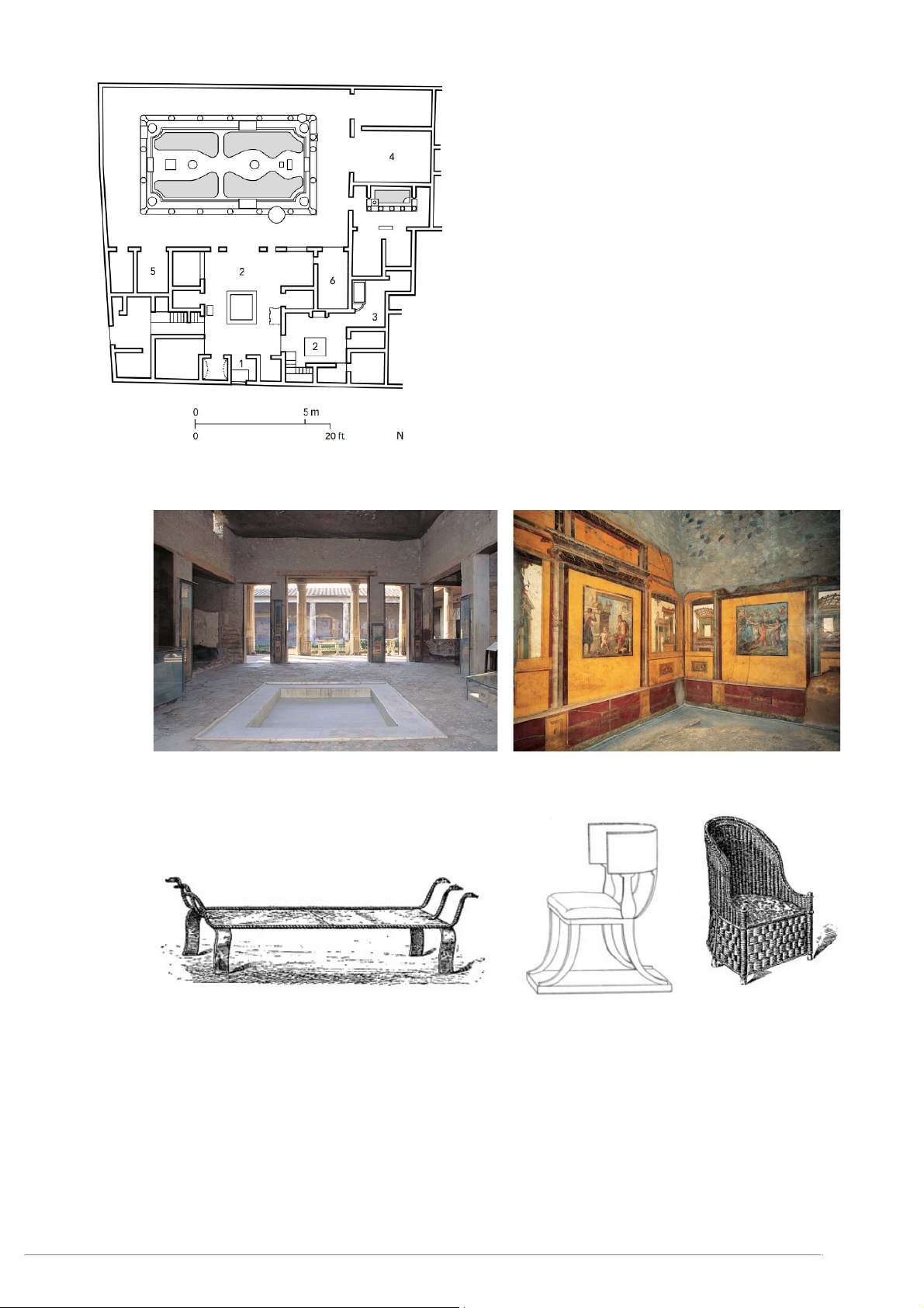 Pompeii, Ý (năm 63 – 79). 1. Lối vào 2. Giếng trời 3. Nhà bếp 4. Phòng ăn 5. Phòng khách 6. Phòng chính