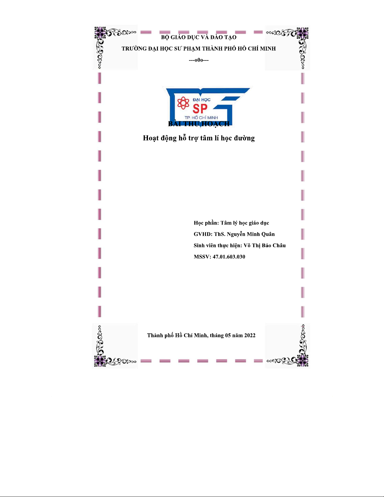 Bài Thu Hoạch Tâm Lý Học Giáo Dục: Hoạt Động Hỗ Trợ Tâm Lý Học Đường