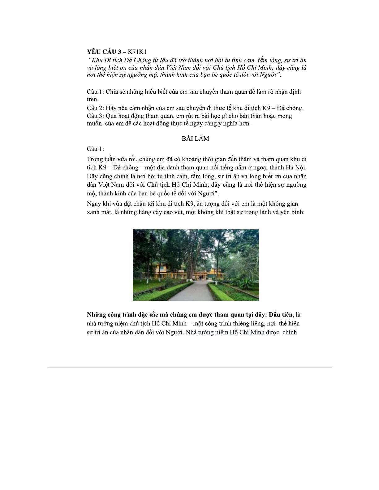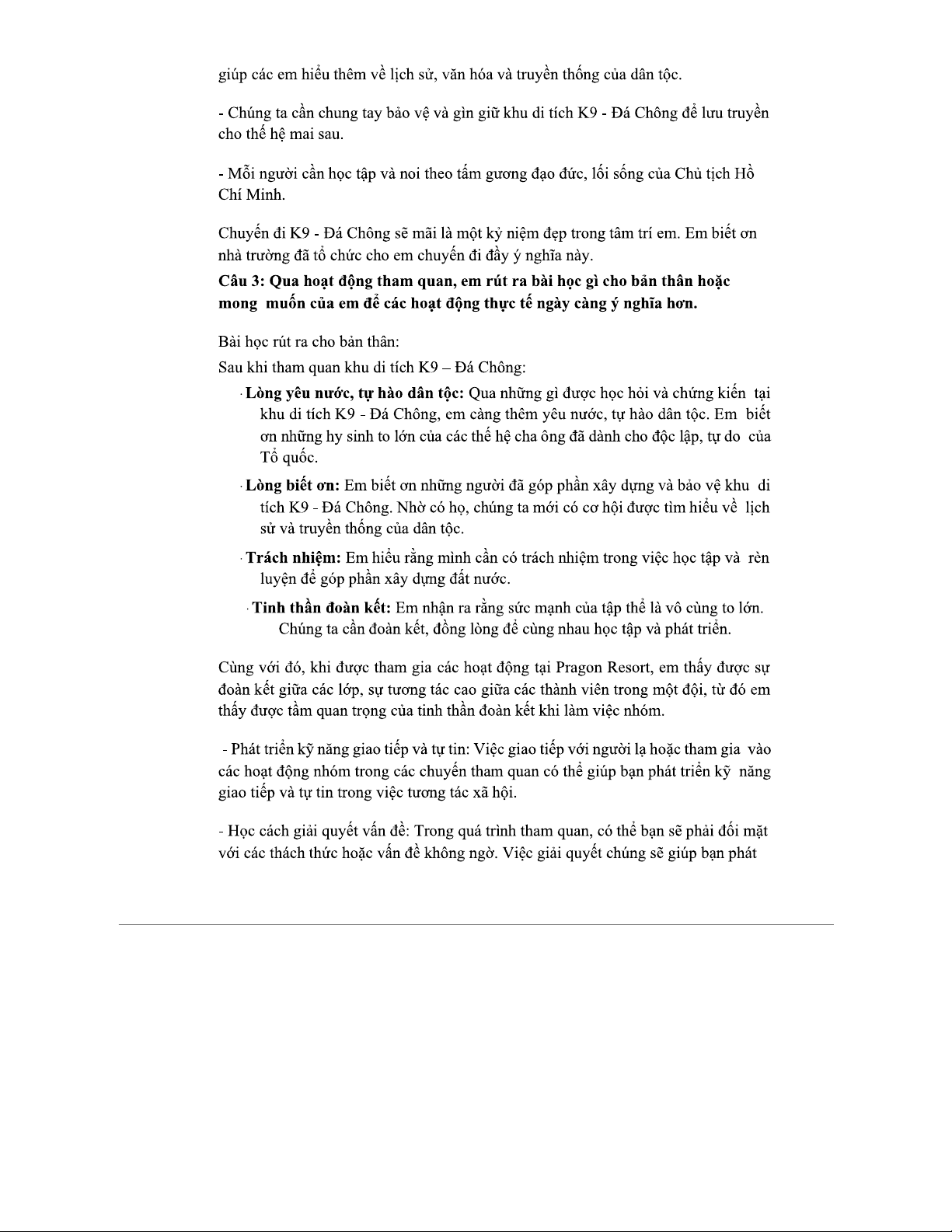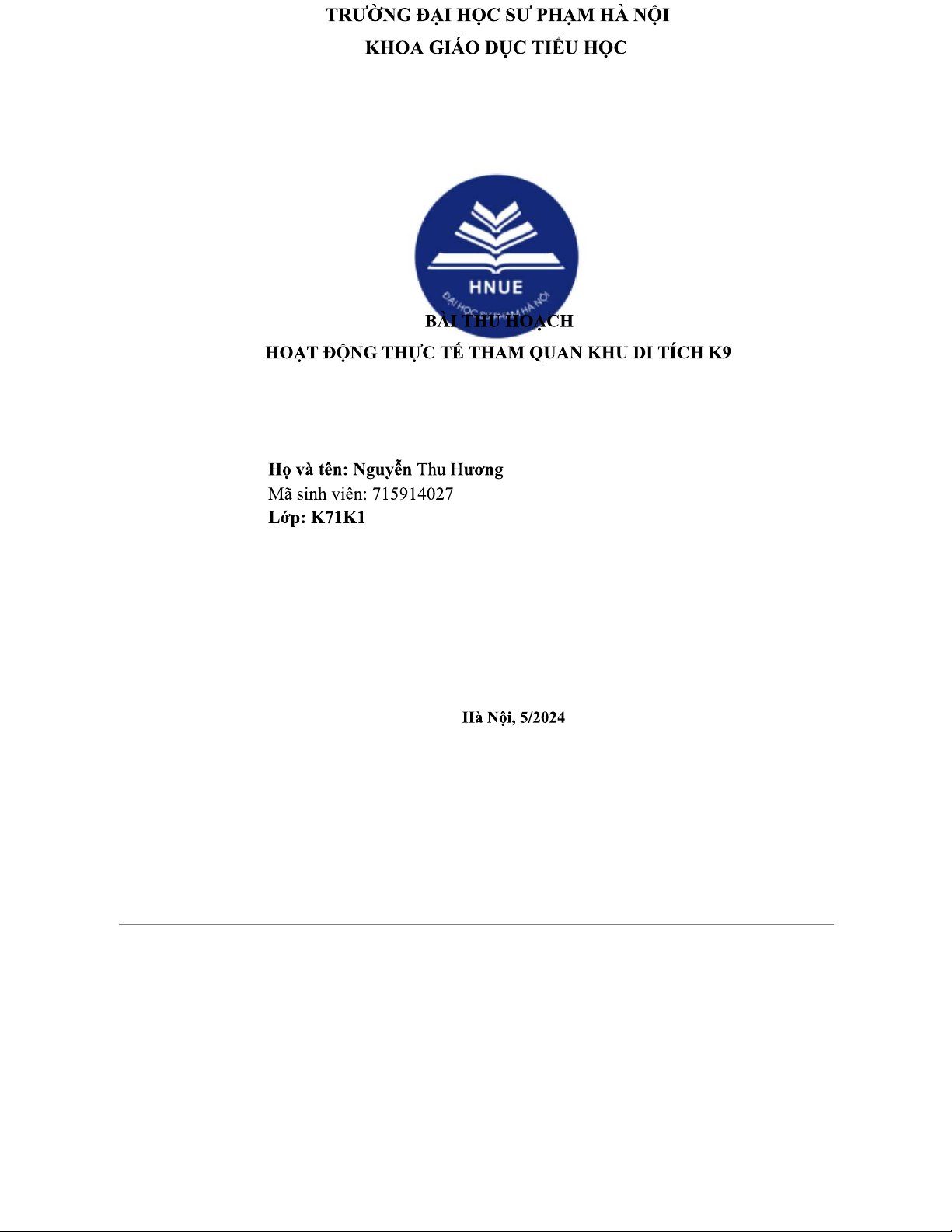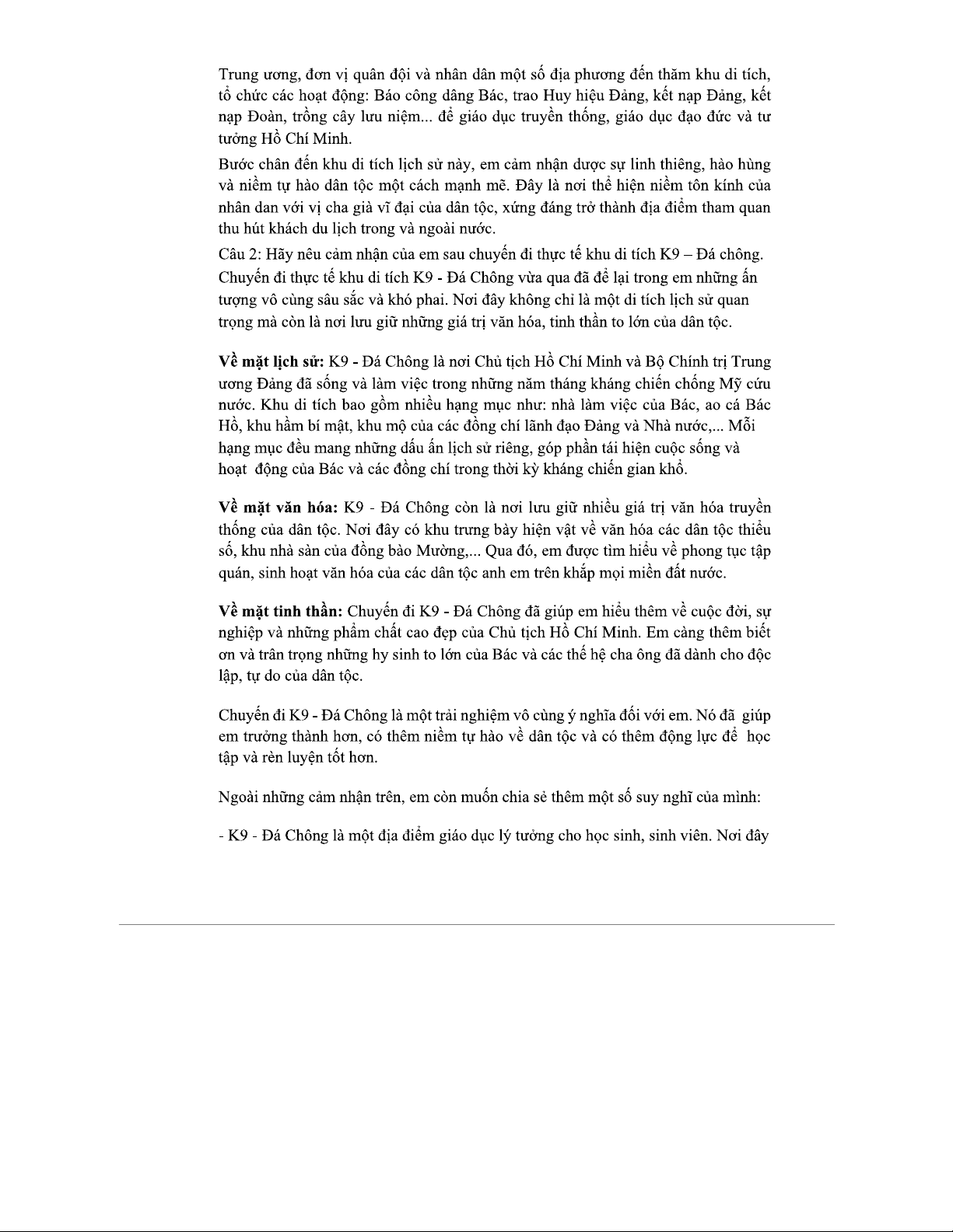 Bài Thu Hoạch Thực Tế Khu Di Tích K9 - Đá Chông - K71K
