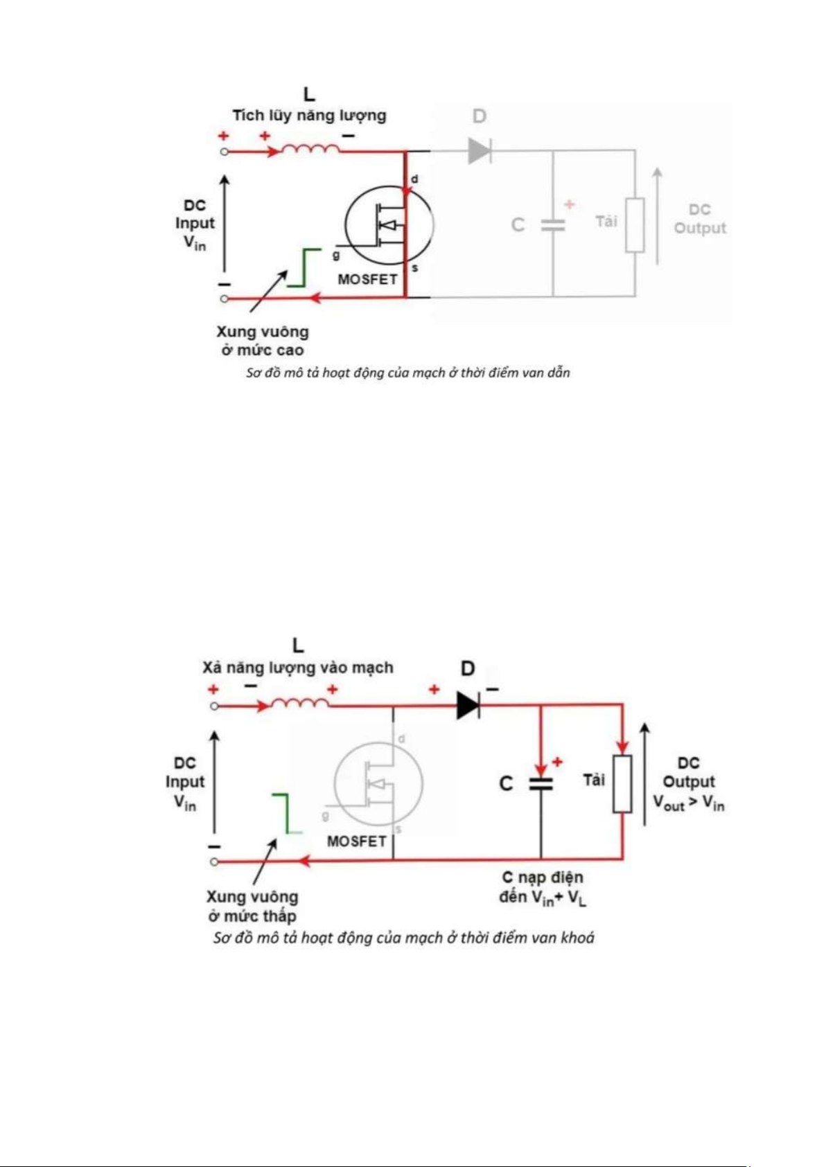 (Vin + VL) trừ đi một ít điện áp trên D, đồng thời cung cấp cho tải cho đến khi van dẫn trở lại.