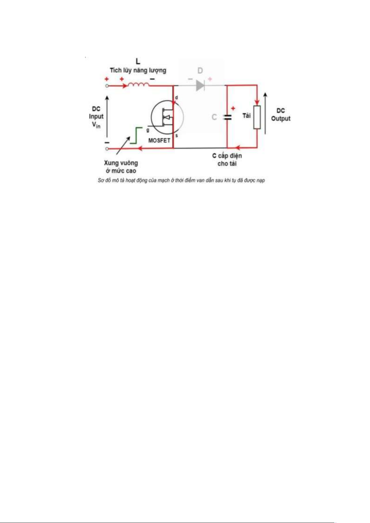 - Mosfet dẫn trở lại, diode D phân cực ngược, tải vẫn tiếp tục được cung