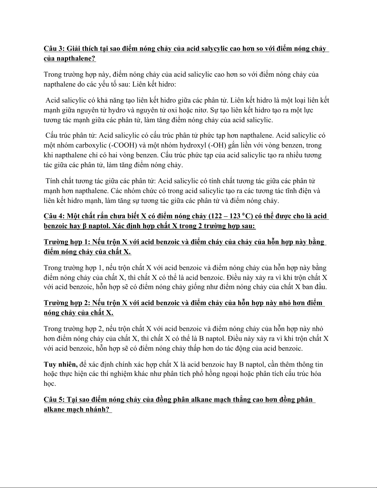 Câu 3: Giải thích tại sao điểm nóng chảy của acid salycylic cao hơn so với điểm nóng chảy của napthalene?
