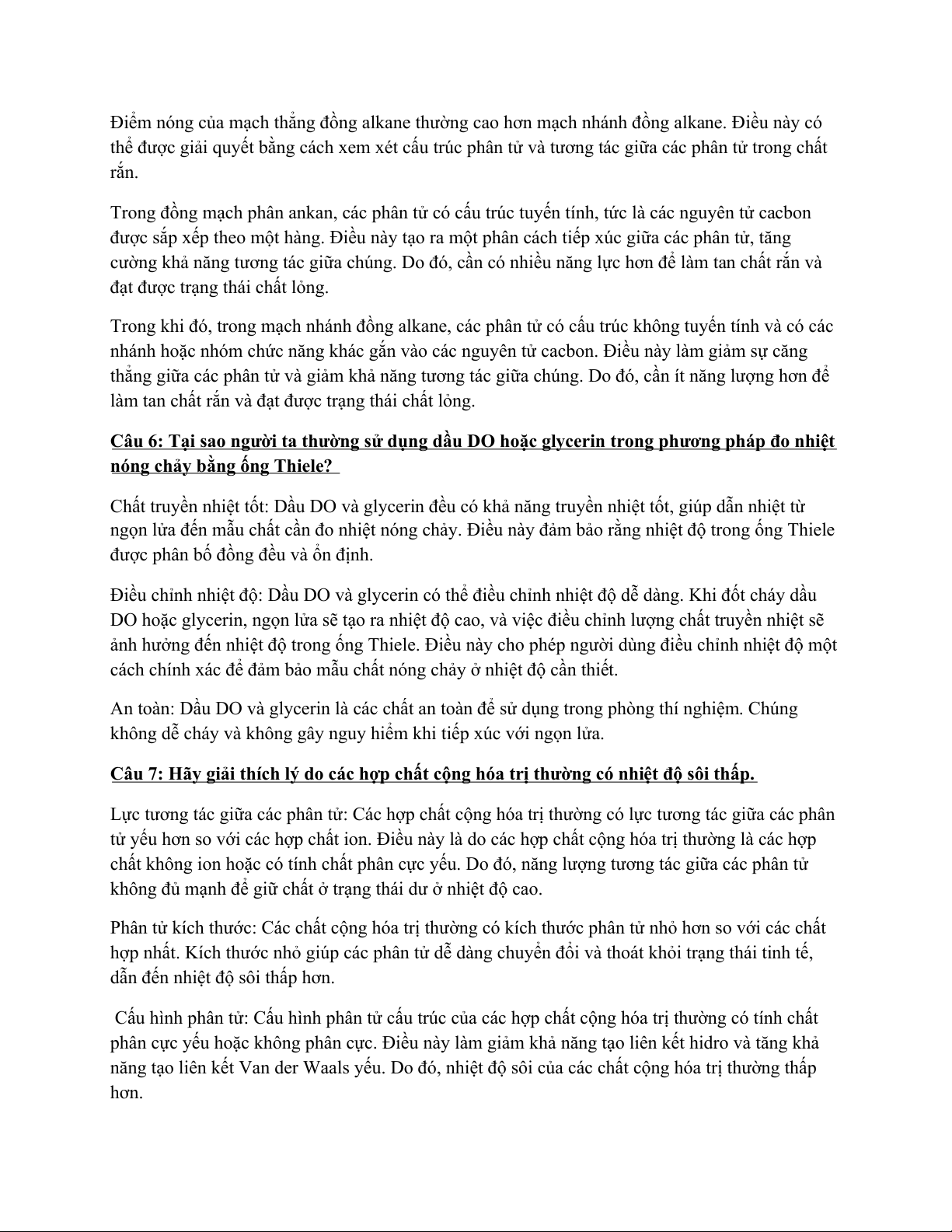 Câu 7: Hãy giải thích lý do các hợp chất cộng hóa trị thường có nhiệt độ sôi thấp.