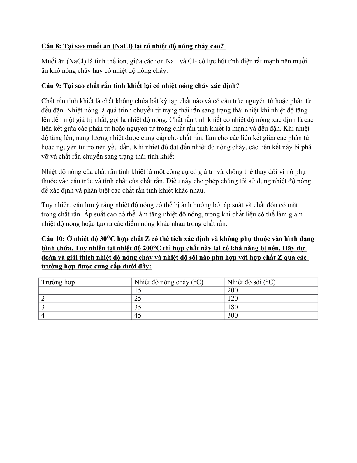 Câu 8: Tại sao muối ăn (NaCl) lại có nhiệt độ nóng chảy cao?