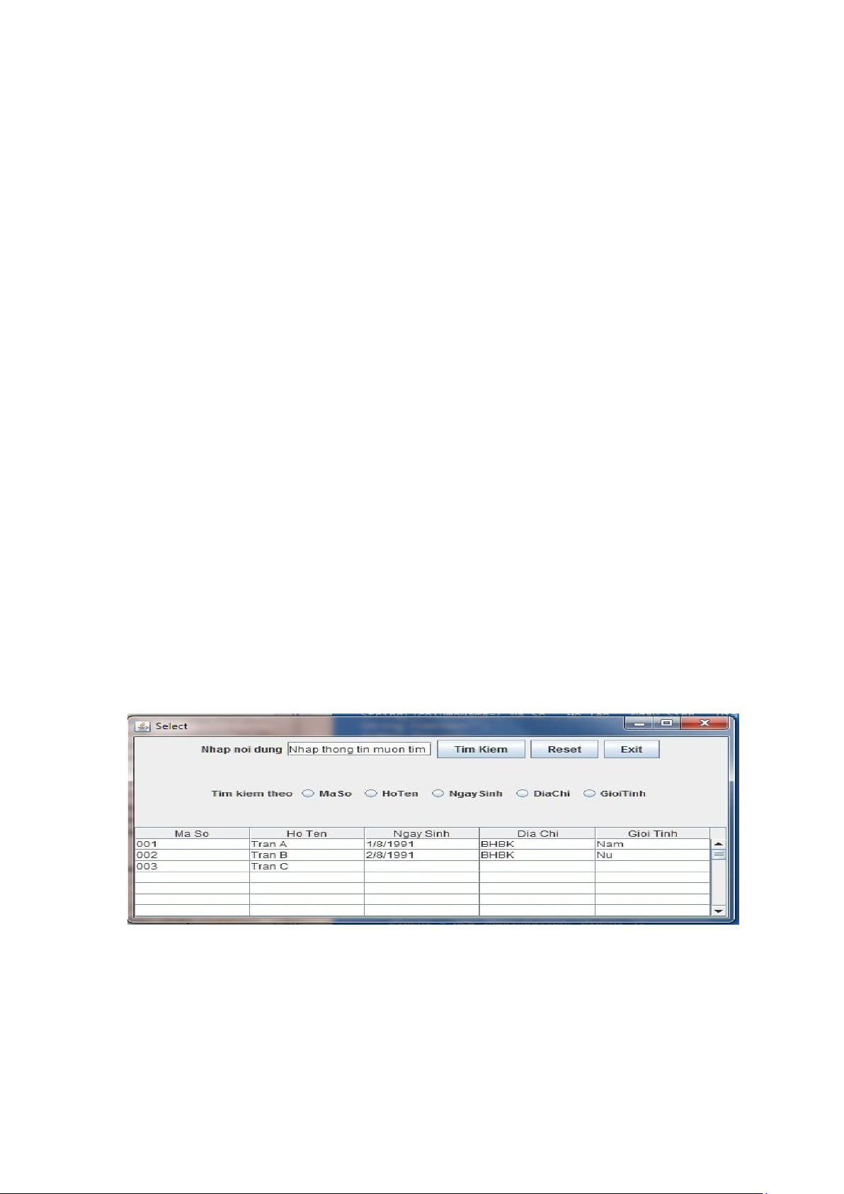7.2 Viết chương trình thực hiện truy vấn cơ sở dữ liệu với giao diện  như sau :    lOMoAR cPSD| 58504431