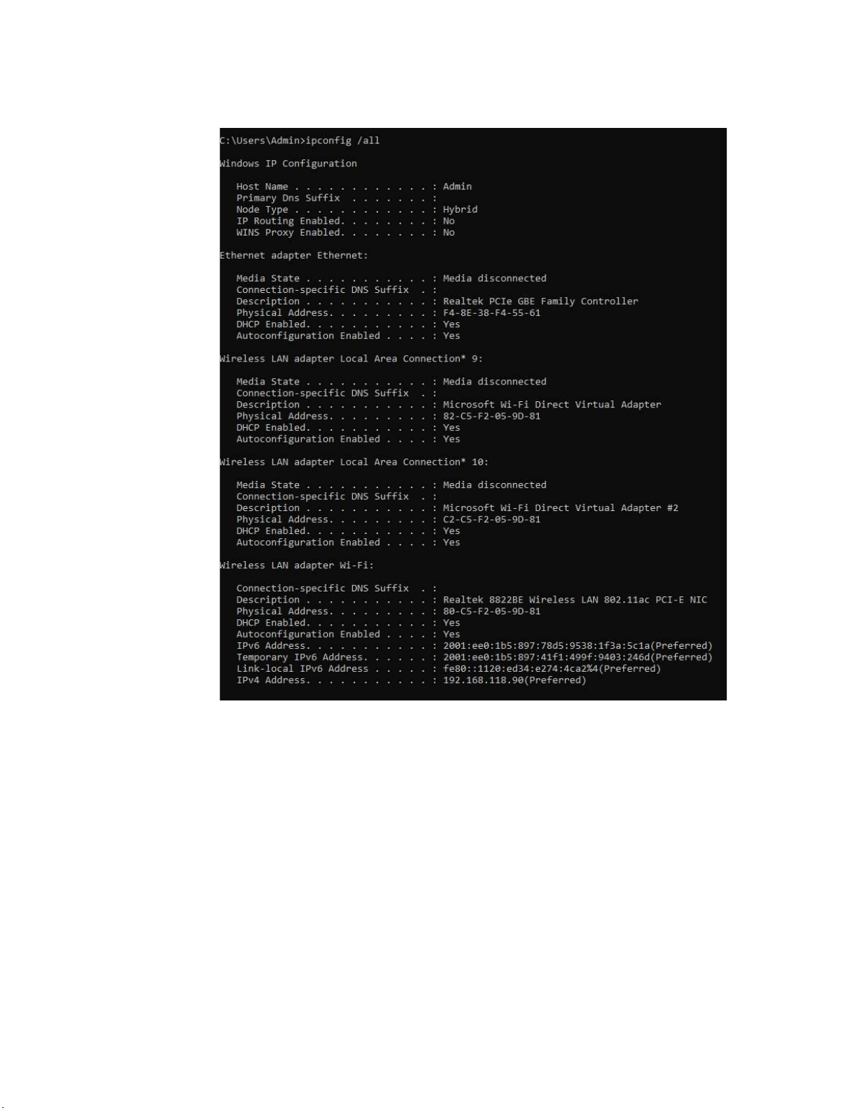 Cú pháp: C:\Users\Admin>ipconfig /all.
