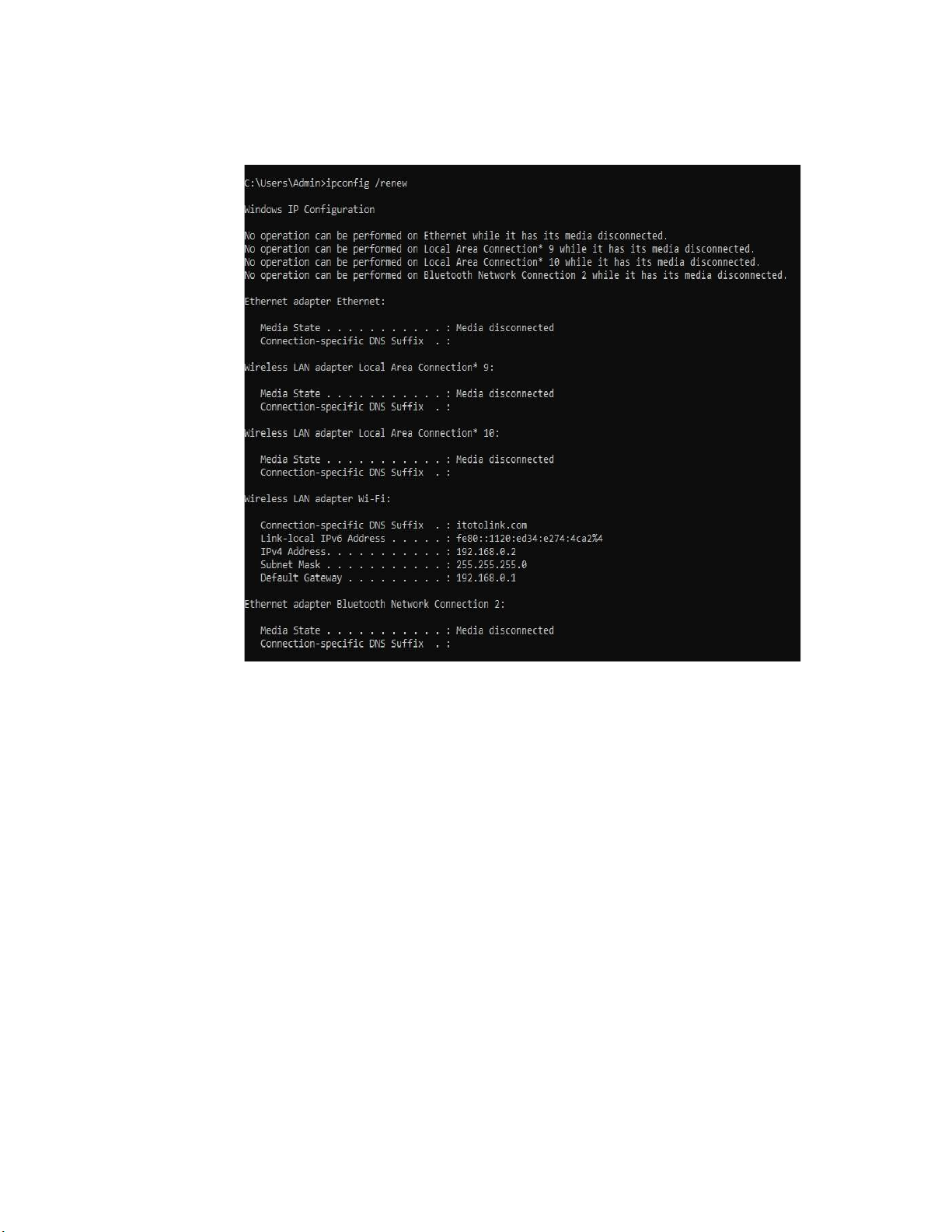 ipconfig /renew do không kết nối. ipconfig /displaydns