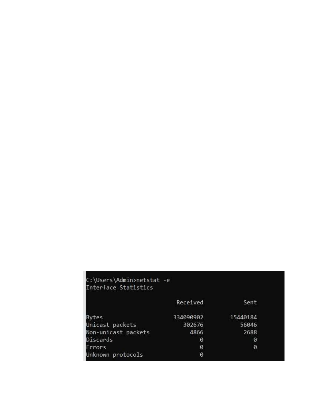 thống kê về giao diện mạng (network interface statistics). Cú pháp:netstat -e.