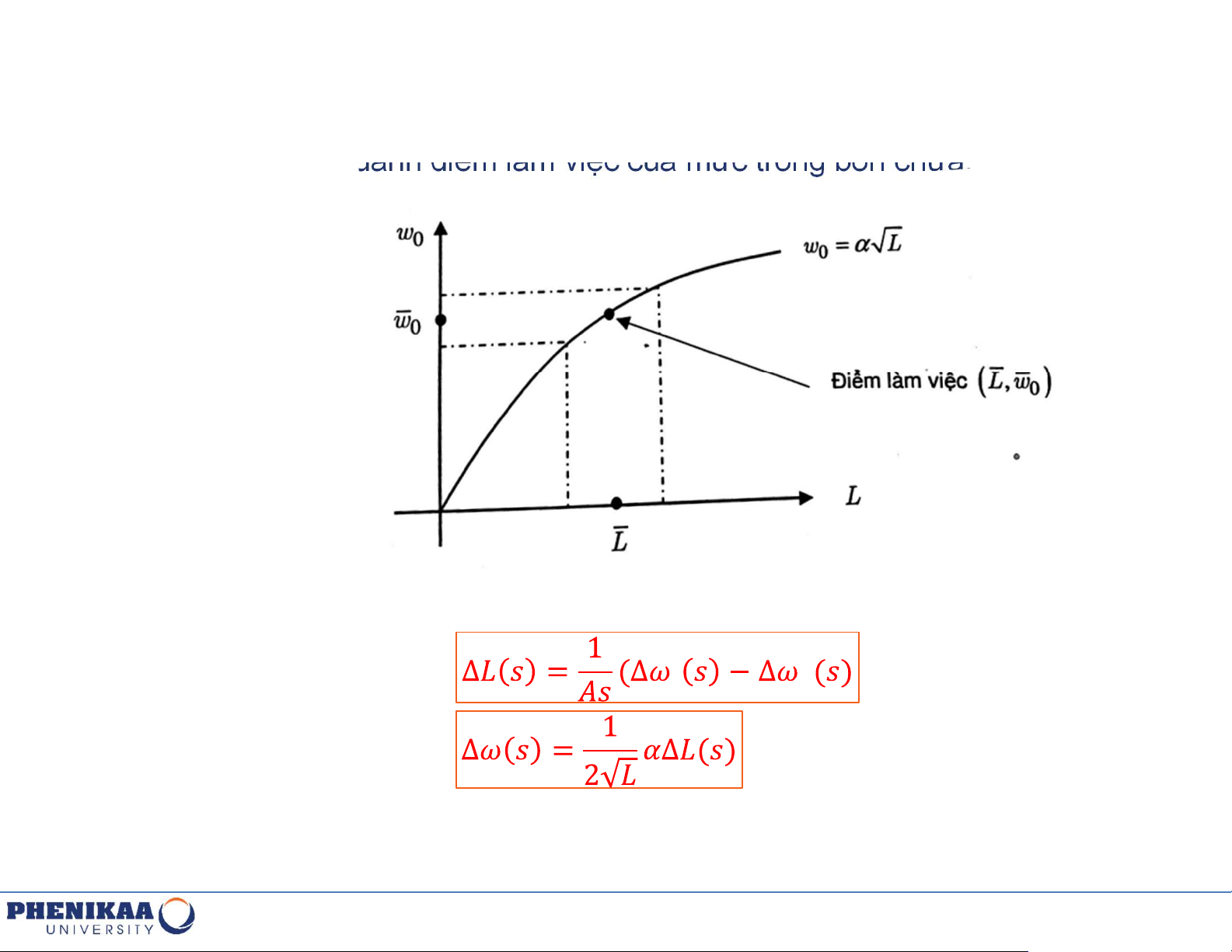 trình mức trong bồn chứa có giá trị tại điểm làm việc là hệ số xả tại điểm làm việc có .