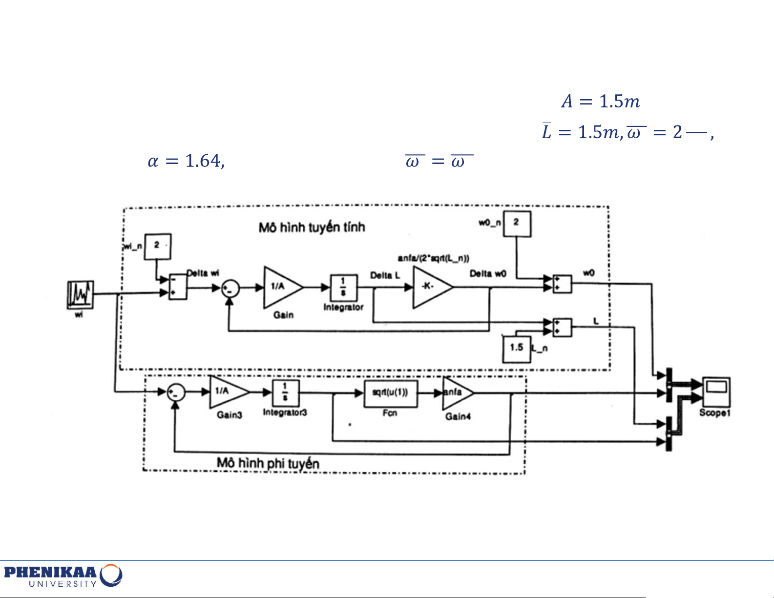 Mô phỏng đáp ứng quá độ với mô hình phi tuyến và mô phình tuyến và nhận xét.