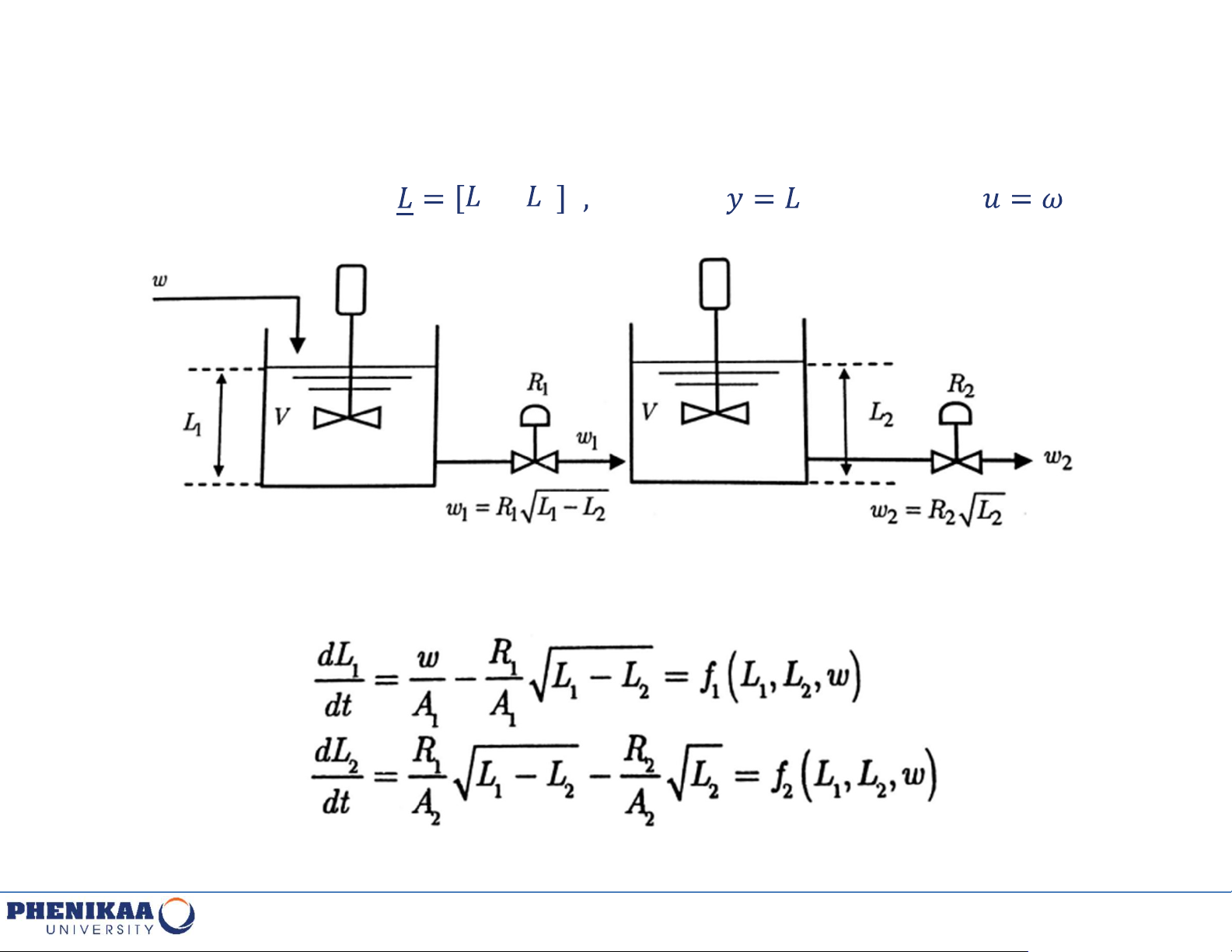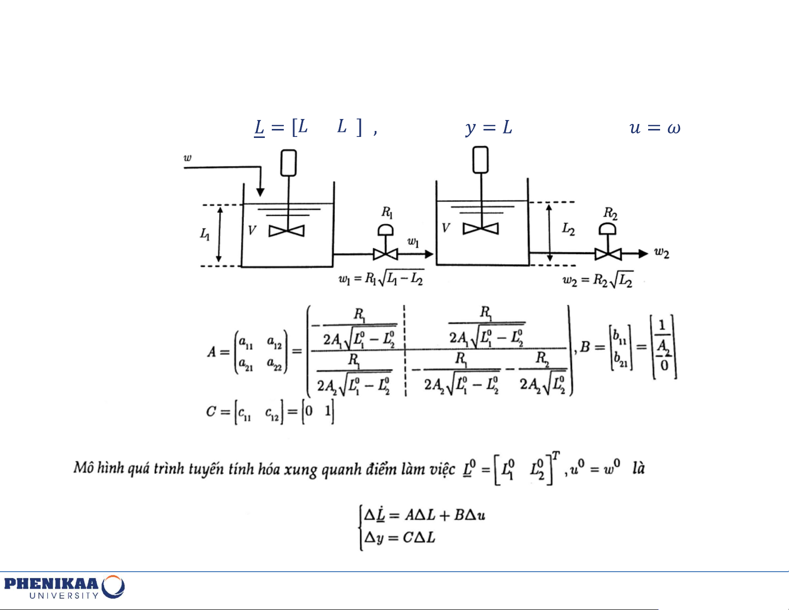 Mô hình hai bồn chứa tương tác như hình, đầu ra là mức ở bồn chứa số 2,