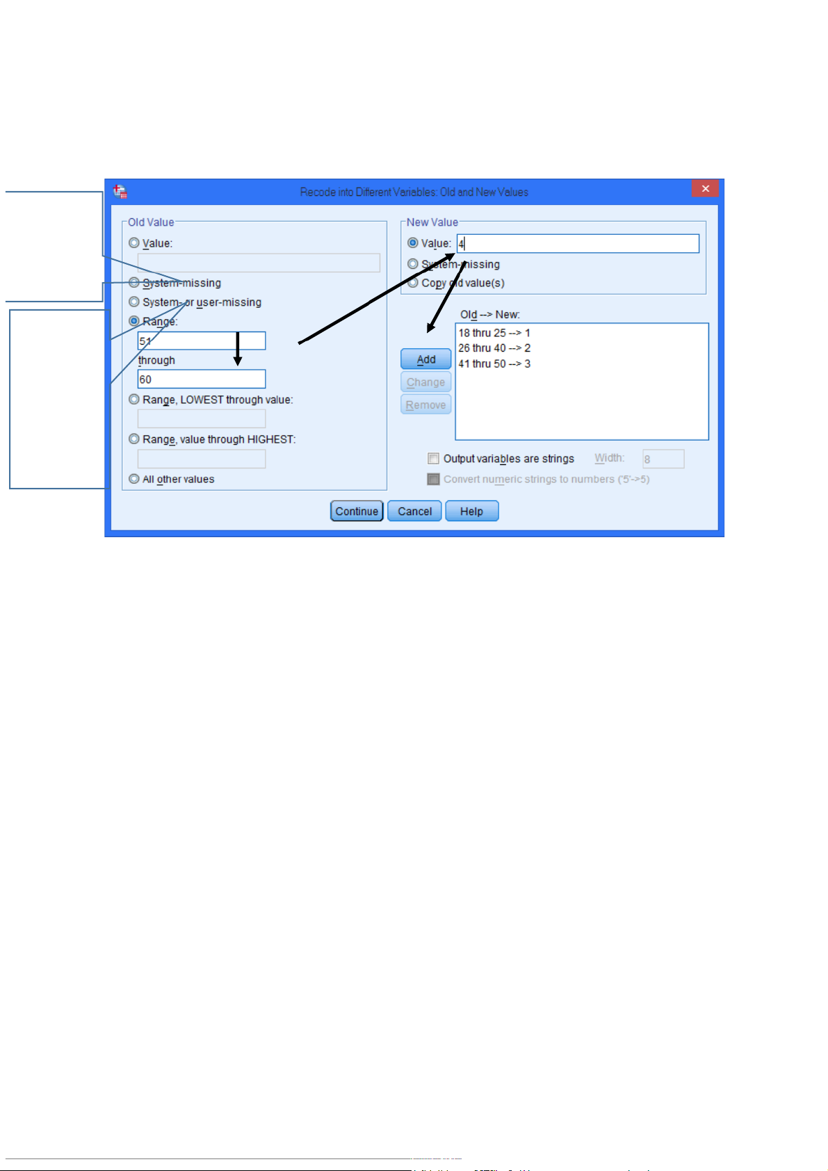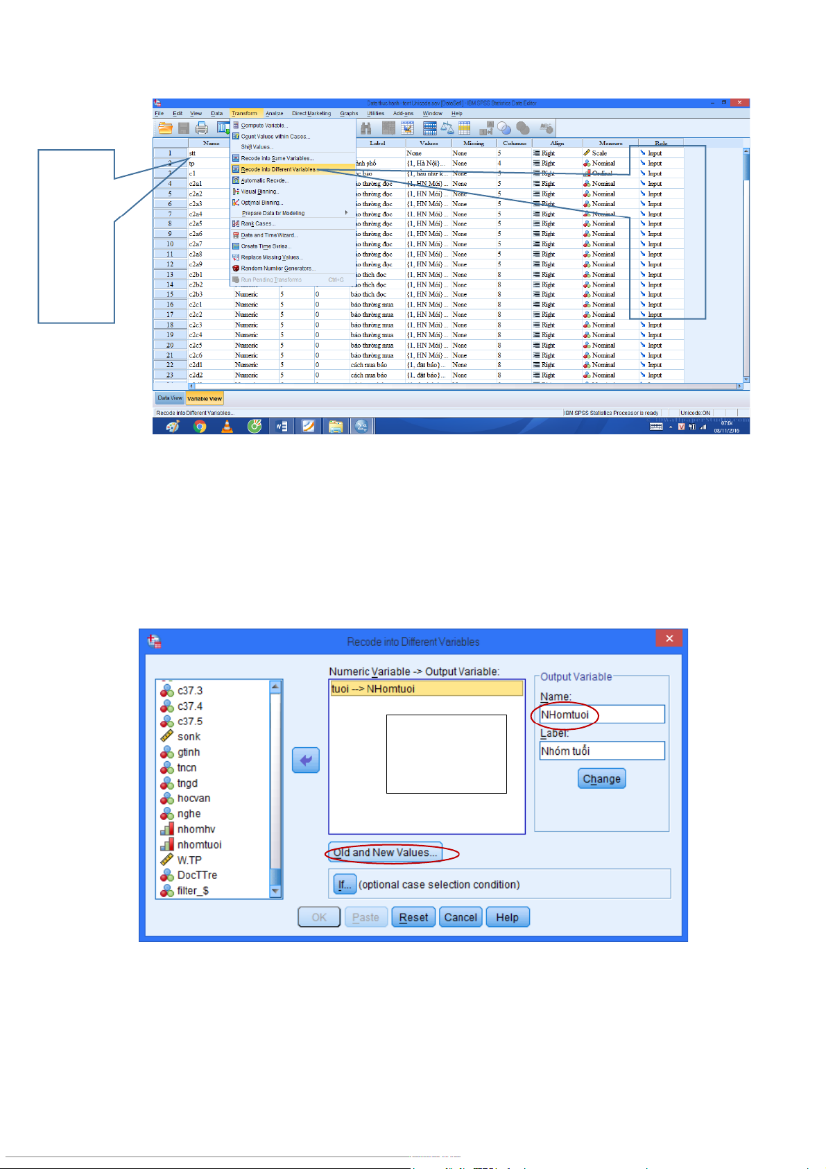 Variables hộp hội thoại xuất hiện Chọ n Chọ n Recode Recode Into Into Diferent Same Variable Variable sẽẽ không sẽẽ làm làm mấất mấất biếấn biếấn cũ cũ