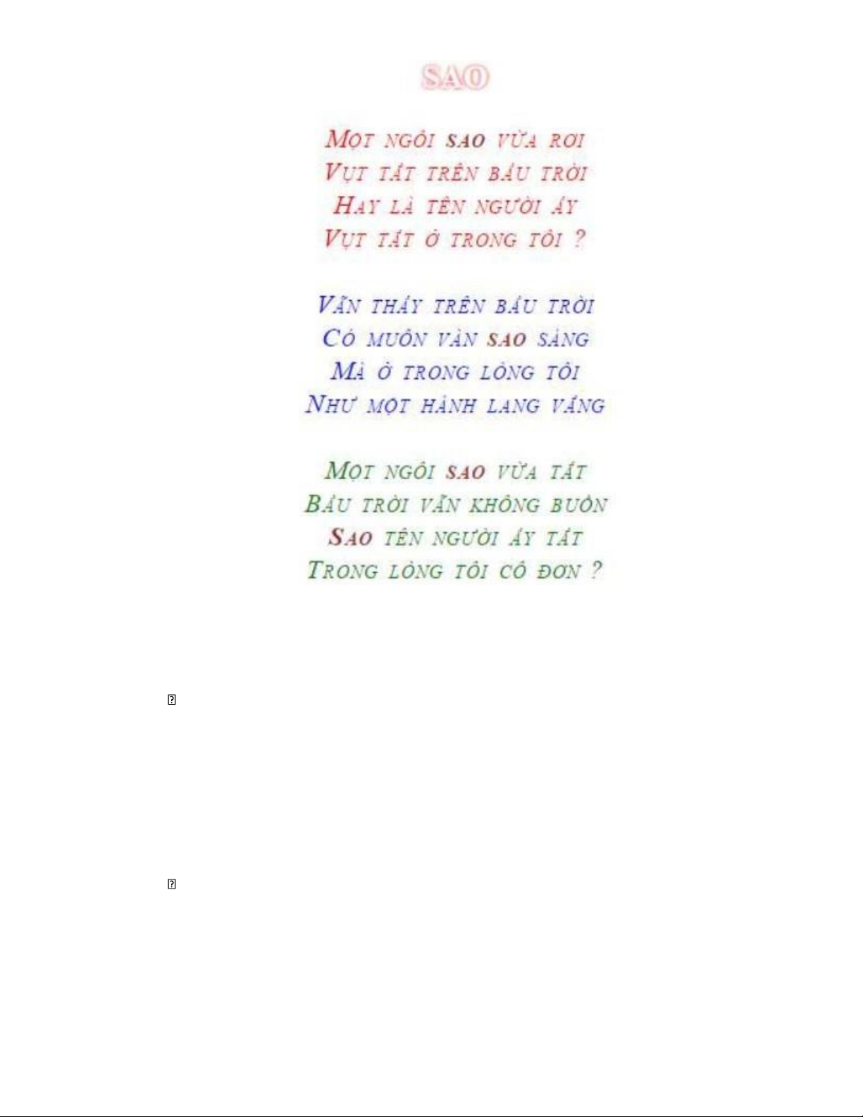Nội dung bài thơ được in nghiêng, có 3 đoạn với 3 màu khác nhau (red, 1 green, blue)