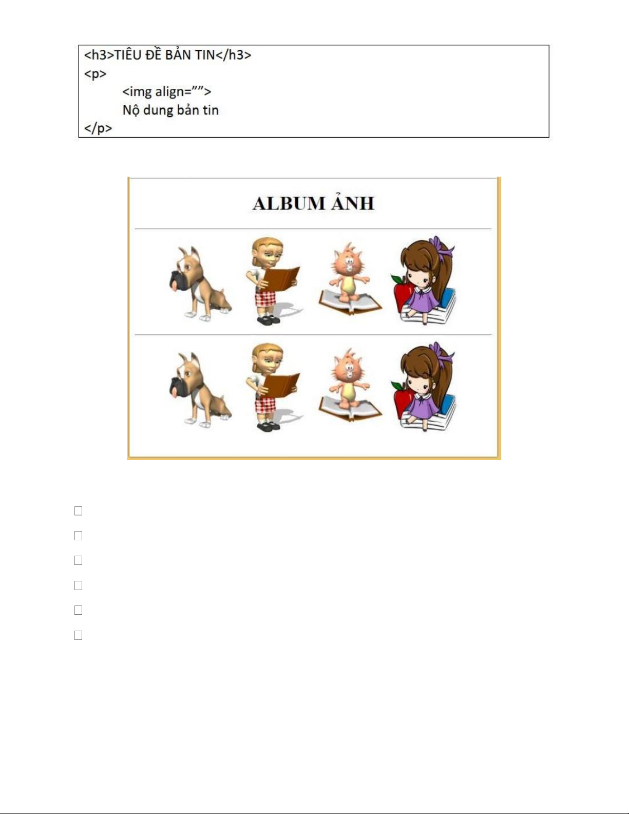 BÀI 2: Xây dựng trang trình bày album ảnh như hình sau Hướng dẫn: