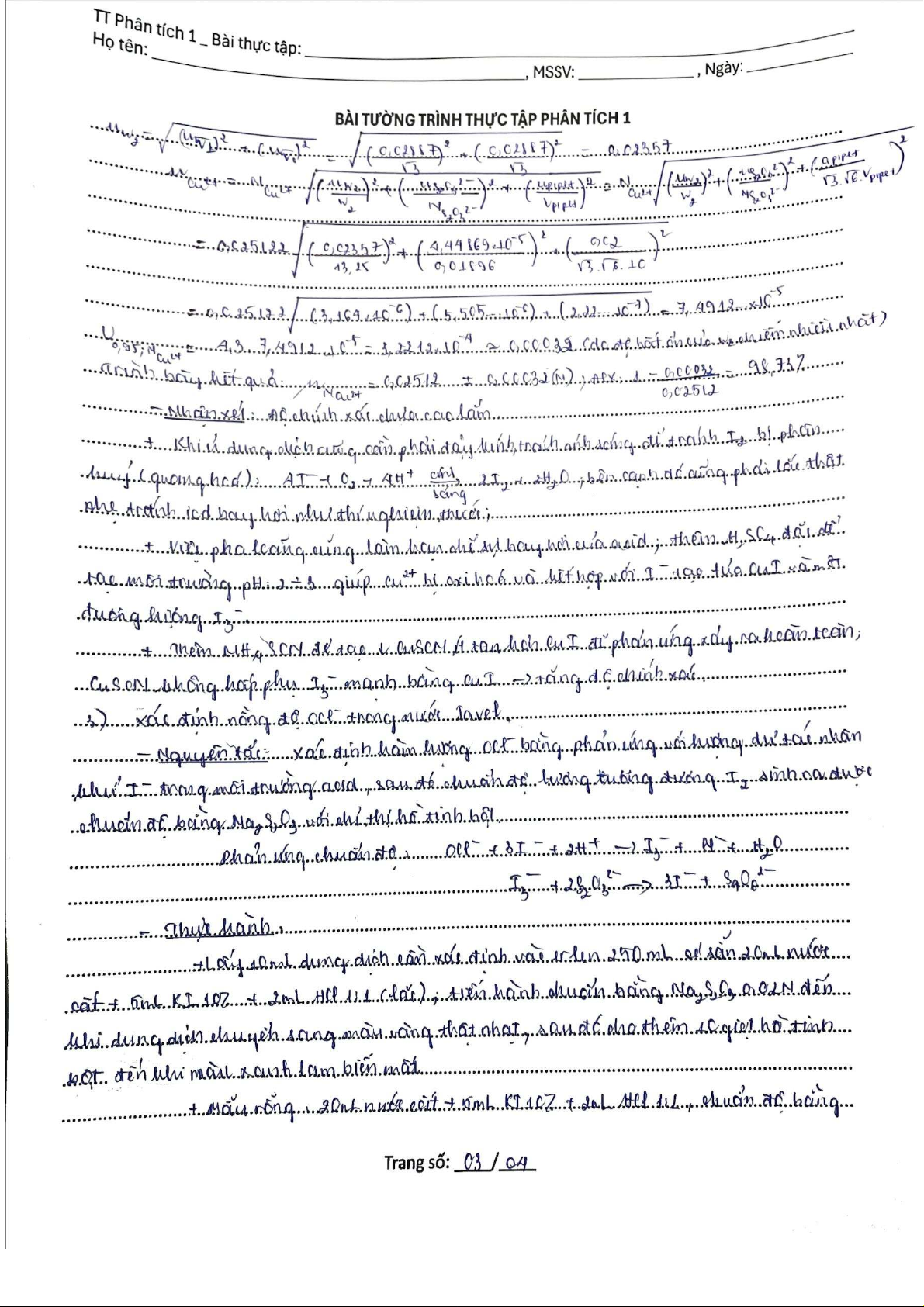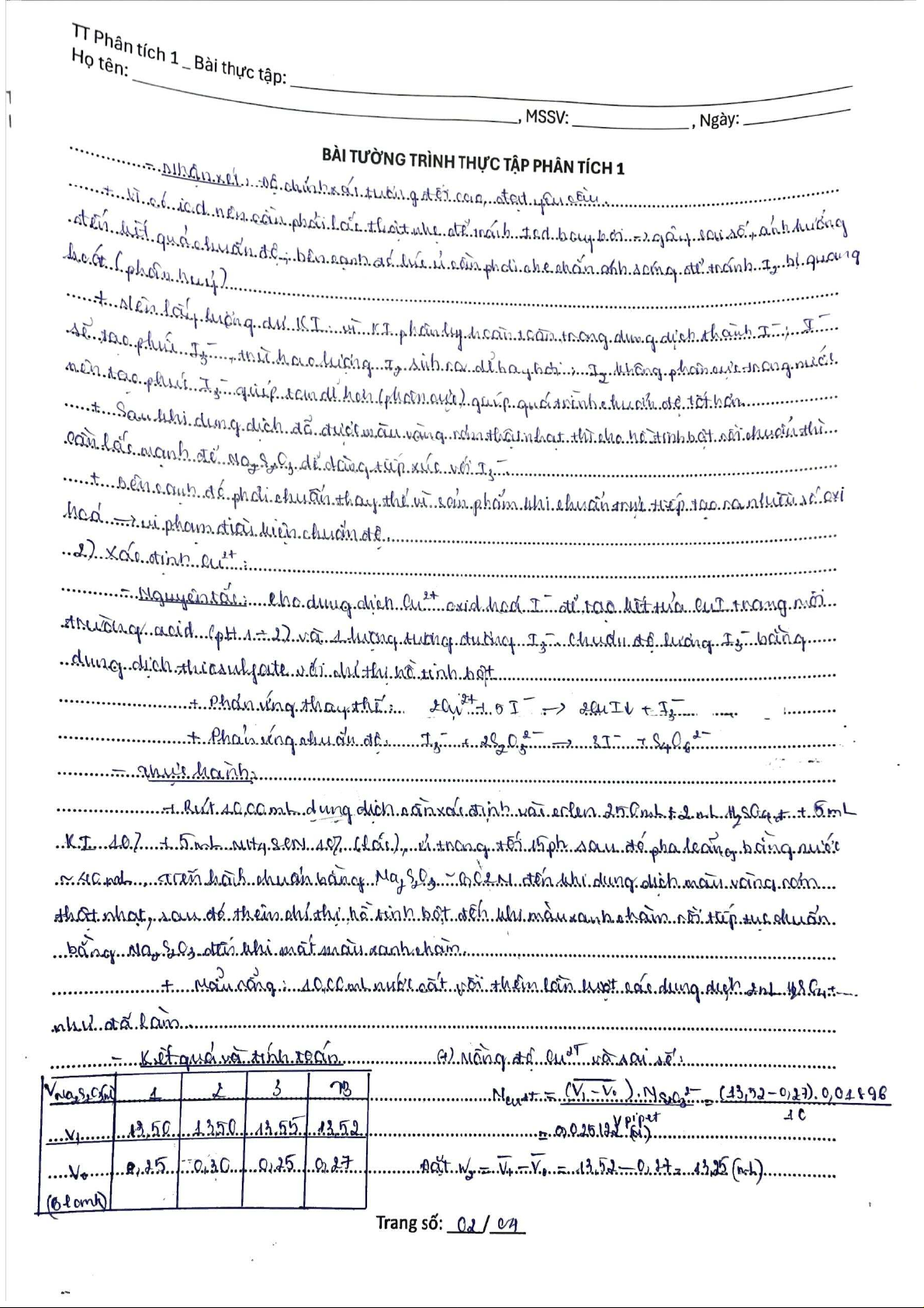 Tóm tắt thí nghiệm Hóa phân tích | Thực tập hóa học phân tích | Trường Đại học Khoa học Tự nhiên, Đại học Quốc gia Hà Nội