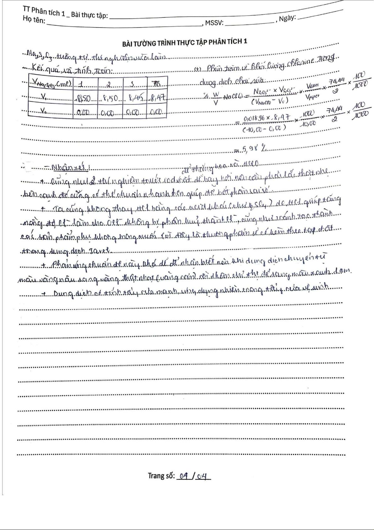 Bài tập thực hành hoá học | Thực tập hóa học phân tích | Trường Đại học Khoa học Tự nhiên, Đại học Quốc gia Hà Nội