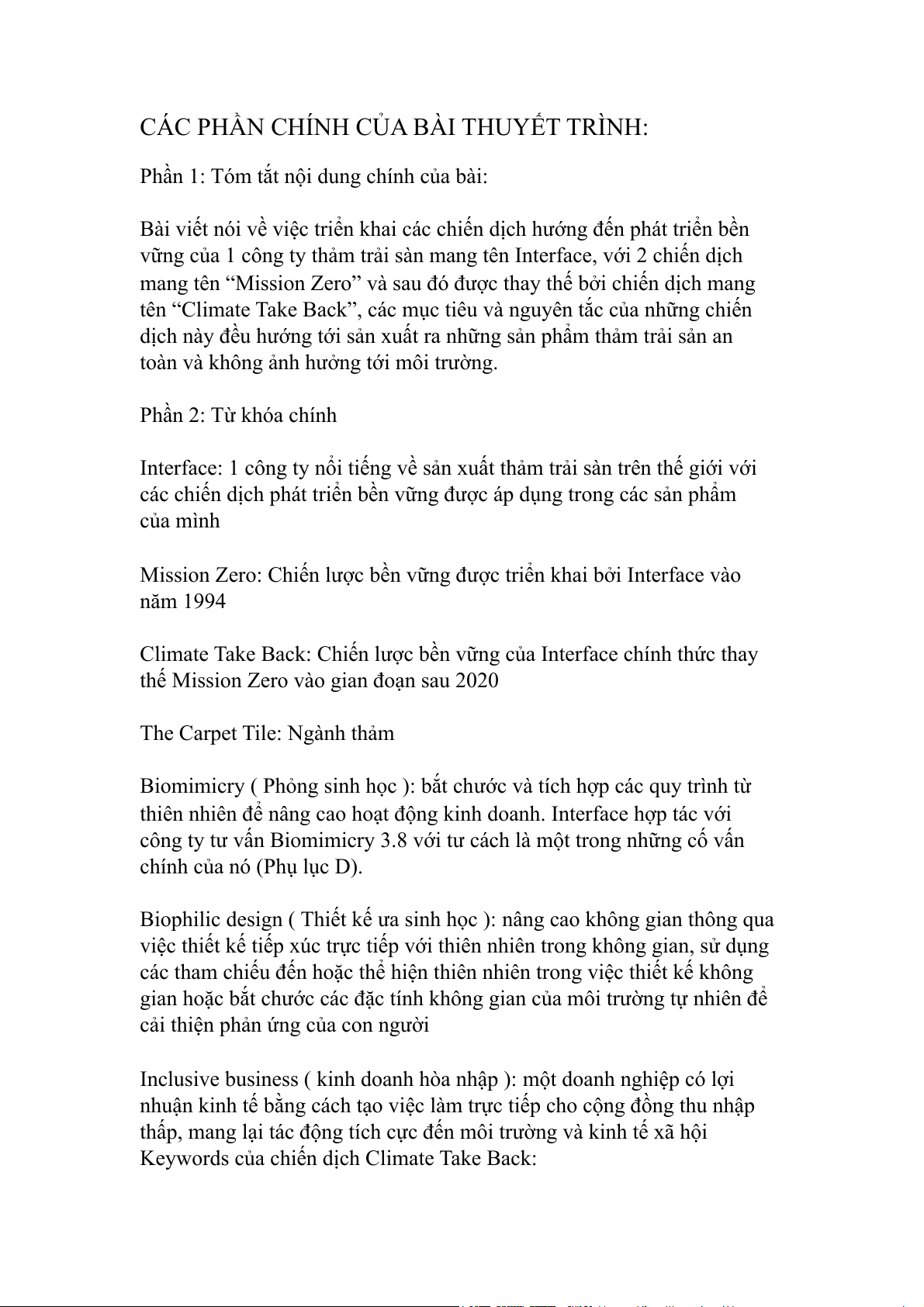CÁC PHẦN CHÍNH CỦA BÀI THUYẾT TRÌNH: