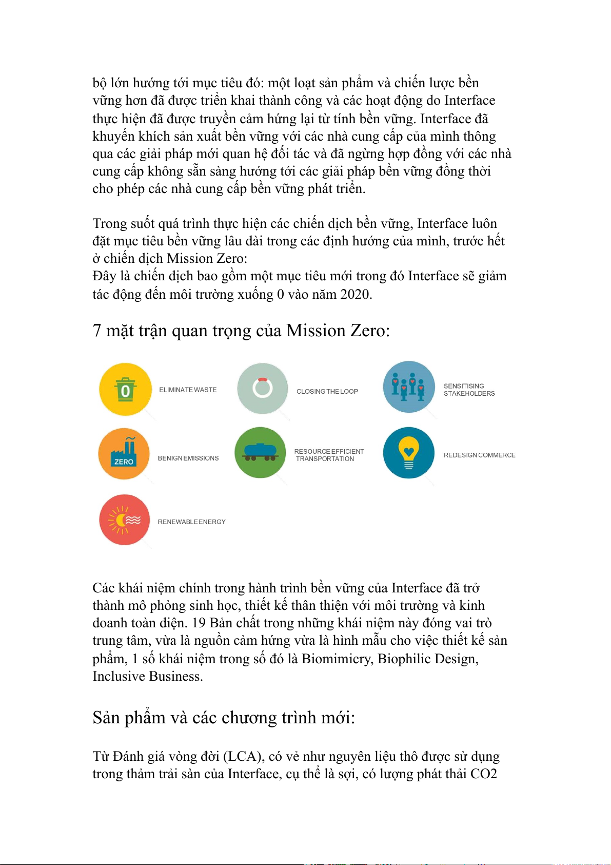Các khái niệm chính trong hành trình bền vững của Interface đã trở