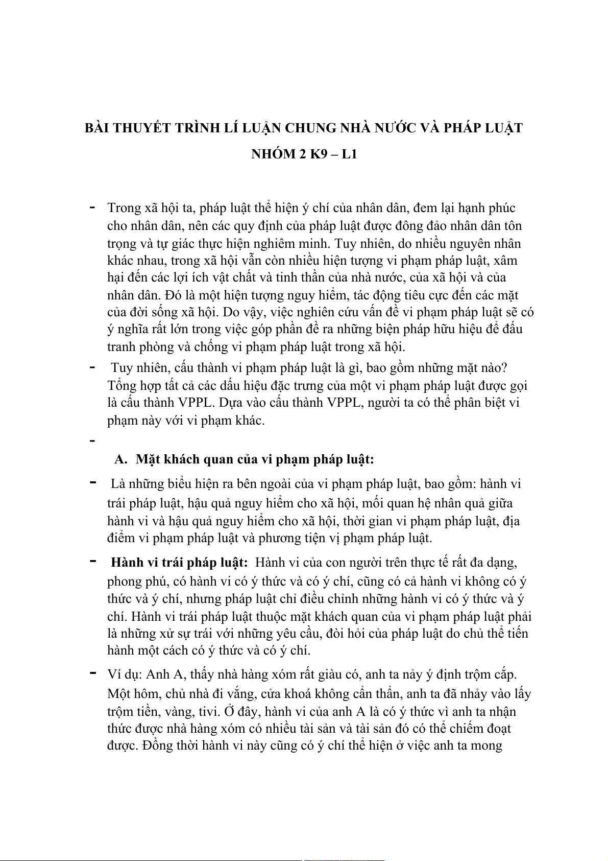 BÀI THUYẾT TRÌNH LÍ LUẬN CHUNG NHÀ NƯỚC VÀ PHÁP LUẬT NHÓM 2 K9 – L1