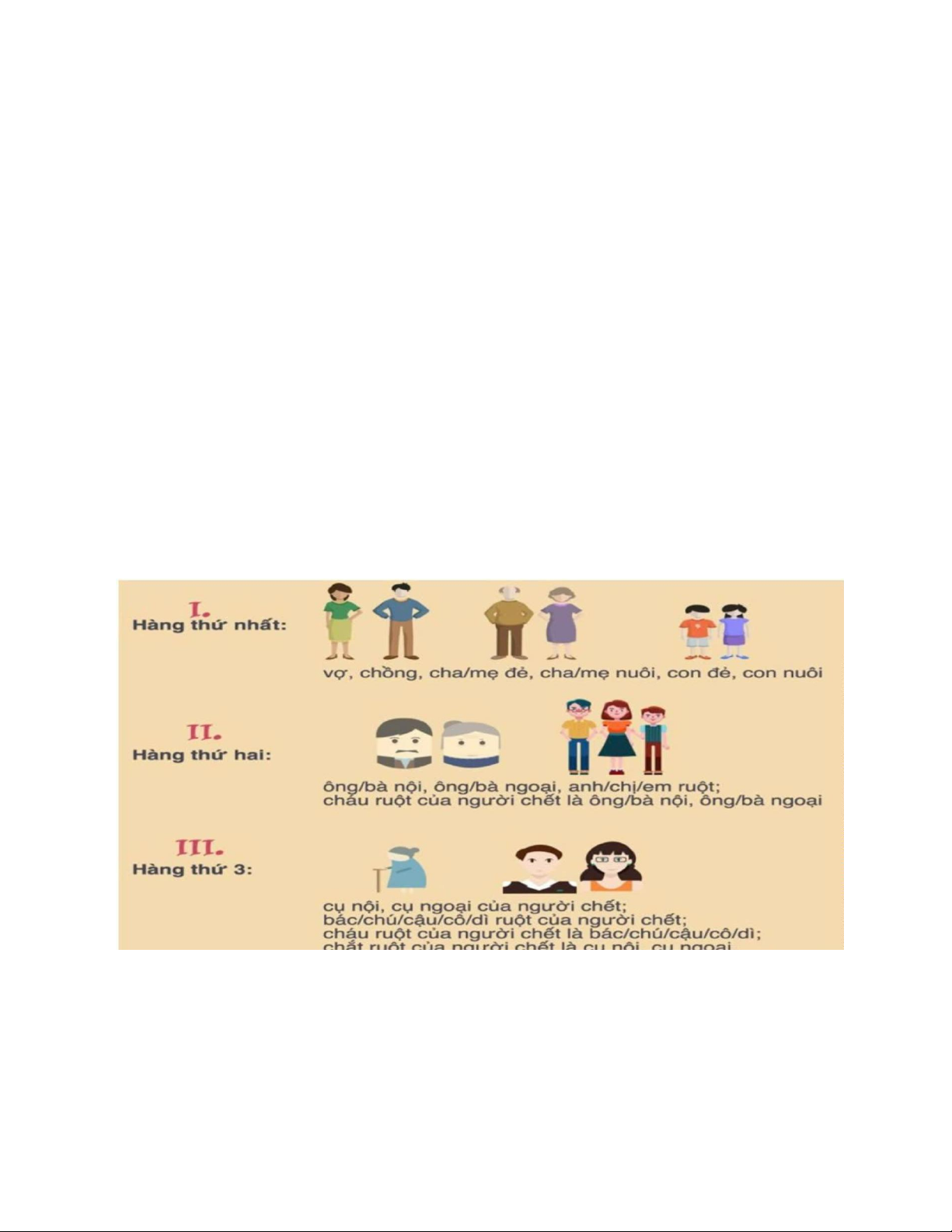Ví dụ: quan hệ giữa cụ, ông, bà, cha, mẹ đẻ và con đẻ của người chết