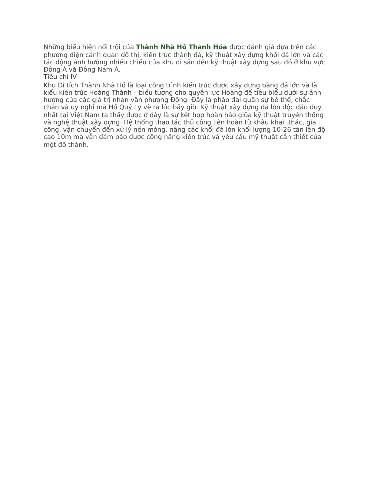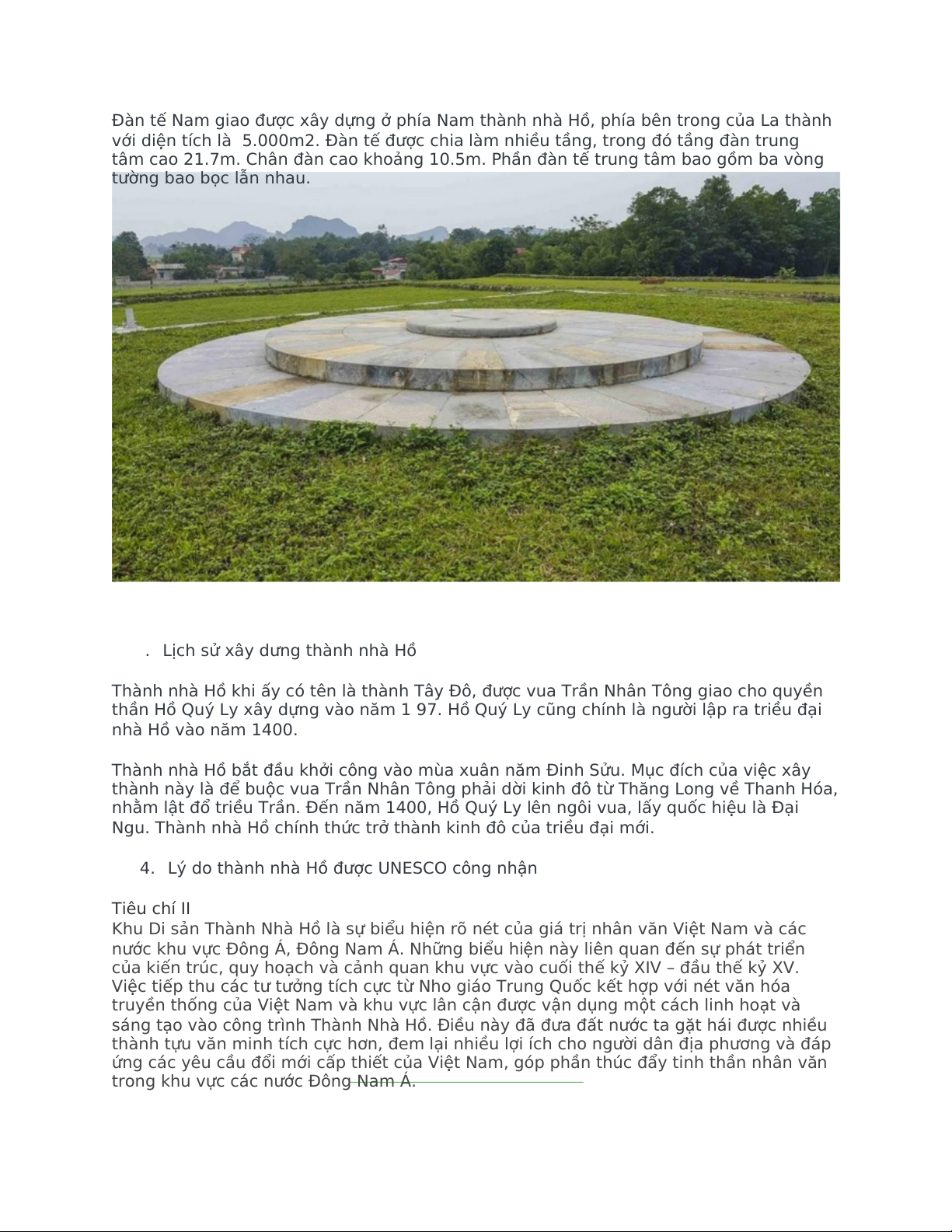 4. Lý do thành nhà Hồ được UNESCO công nhận Tiêu chí II3