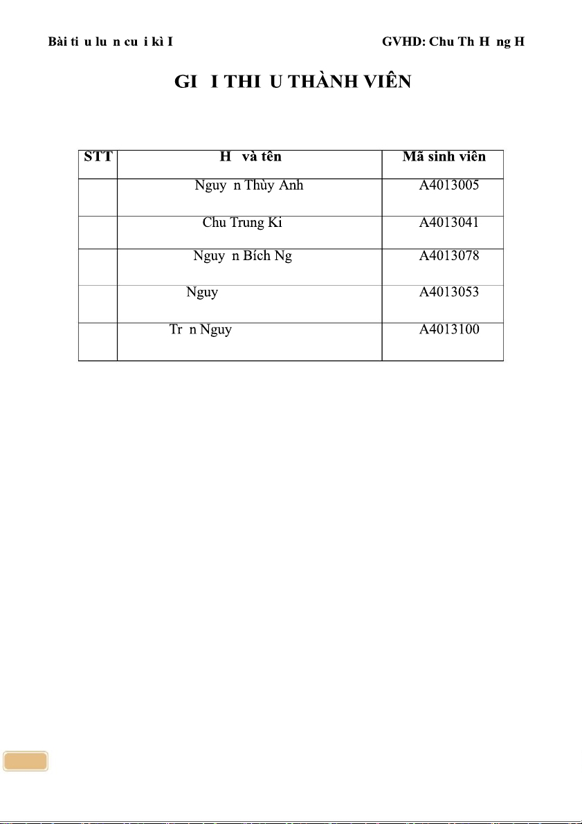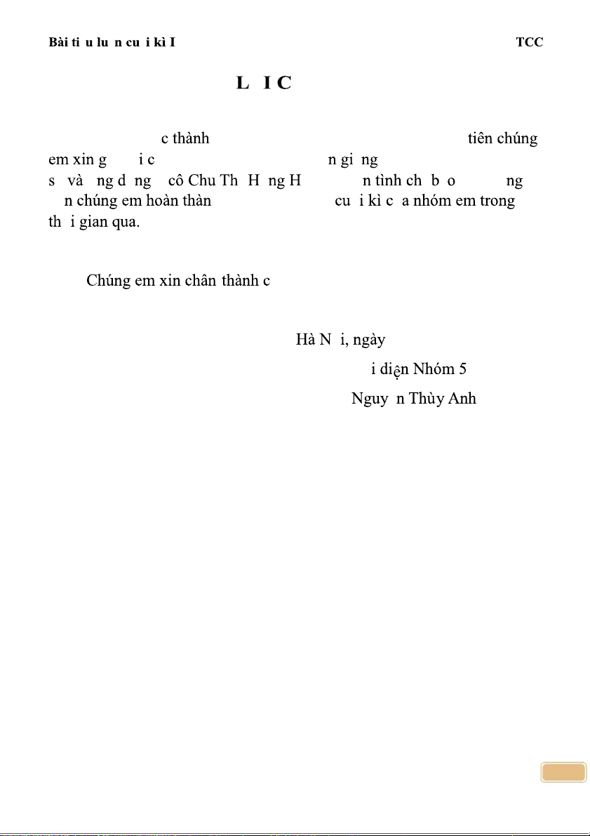 Bài tiểu luận cuối kì I GVHD: Chu Thị Hồng Hải LỜI CẢM NHẬN VÀ ĐÁNH GIÁ