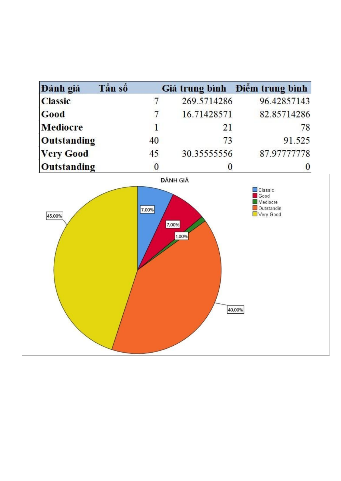 về mức Giá trung bình không có quá nhiều sự khác biệt. Mặc dù loại rượu được xếp hạng lOMoAR cPSD| 61601492
