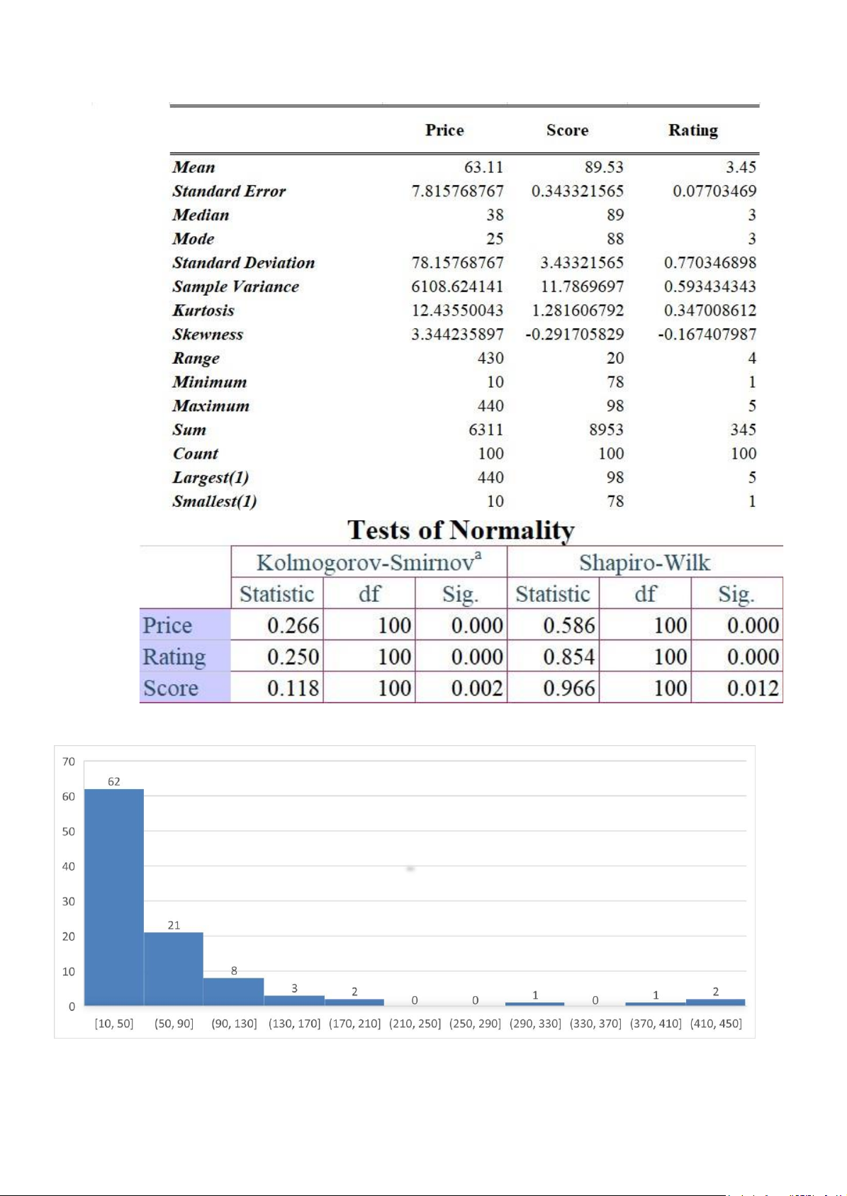 Từ số liệu trên ta thấy được, Giá cả trung bình của 100 chai rượu là 63.11 đô. Giá chai rượu thấp