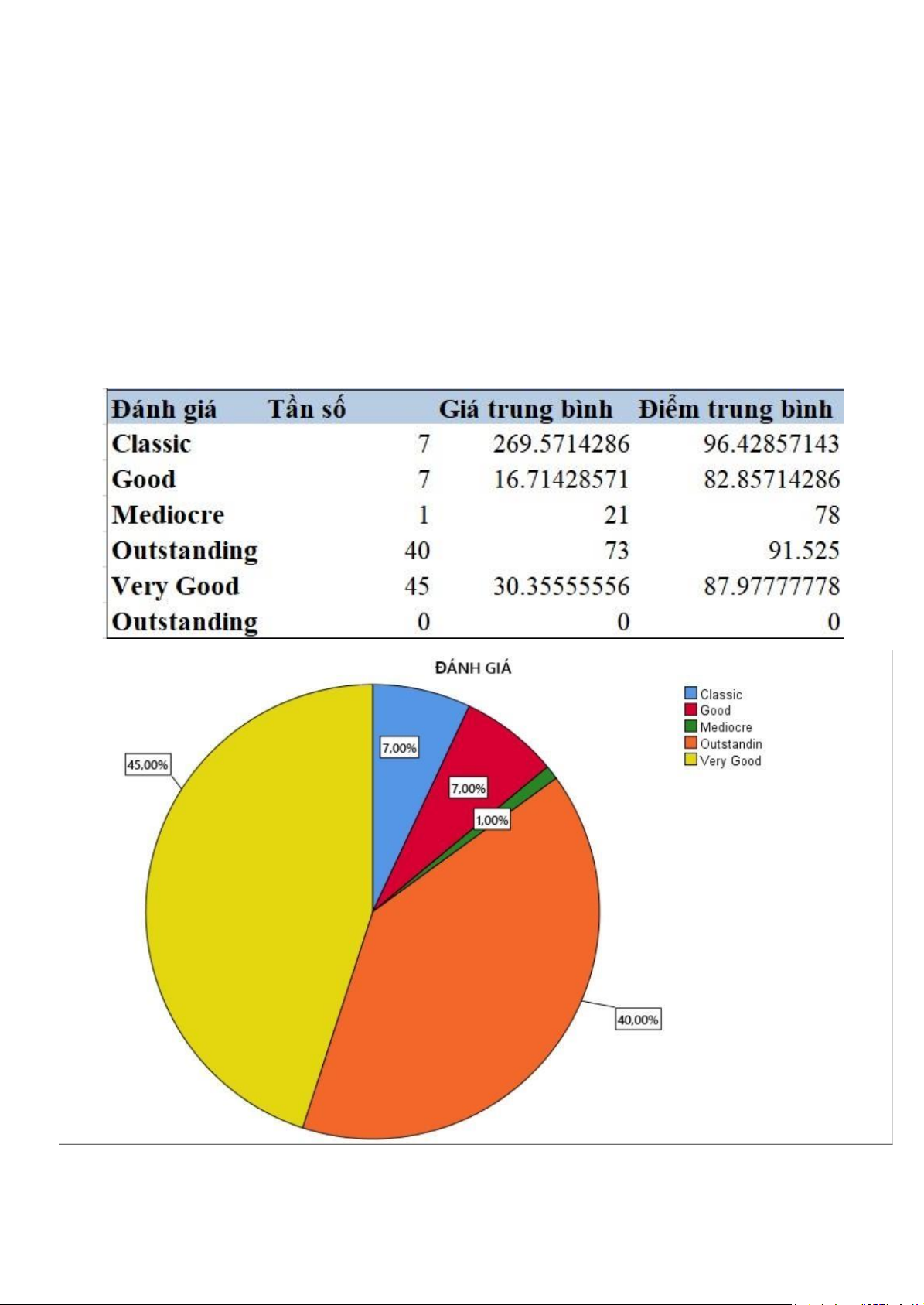 Từ bảng 2.2, các loại rượu được xếp hạng ở mức “Very good”,“Good”,