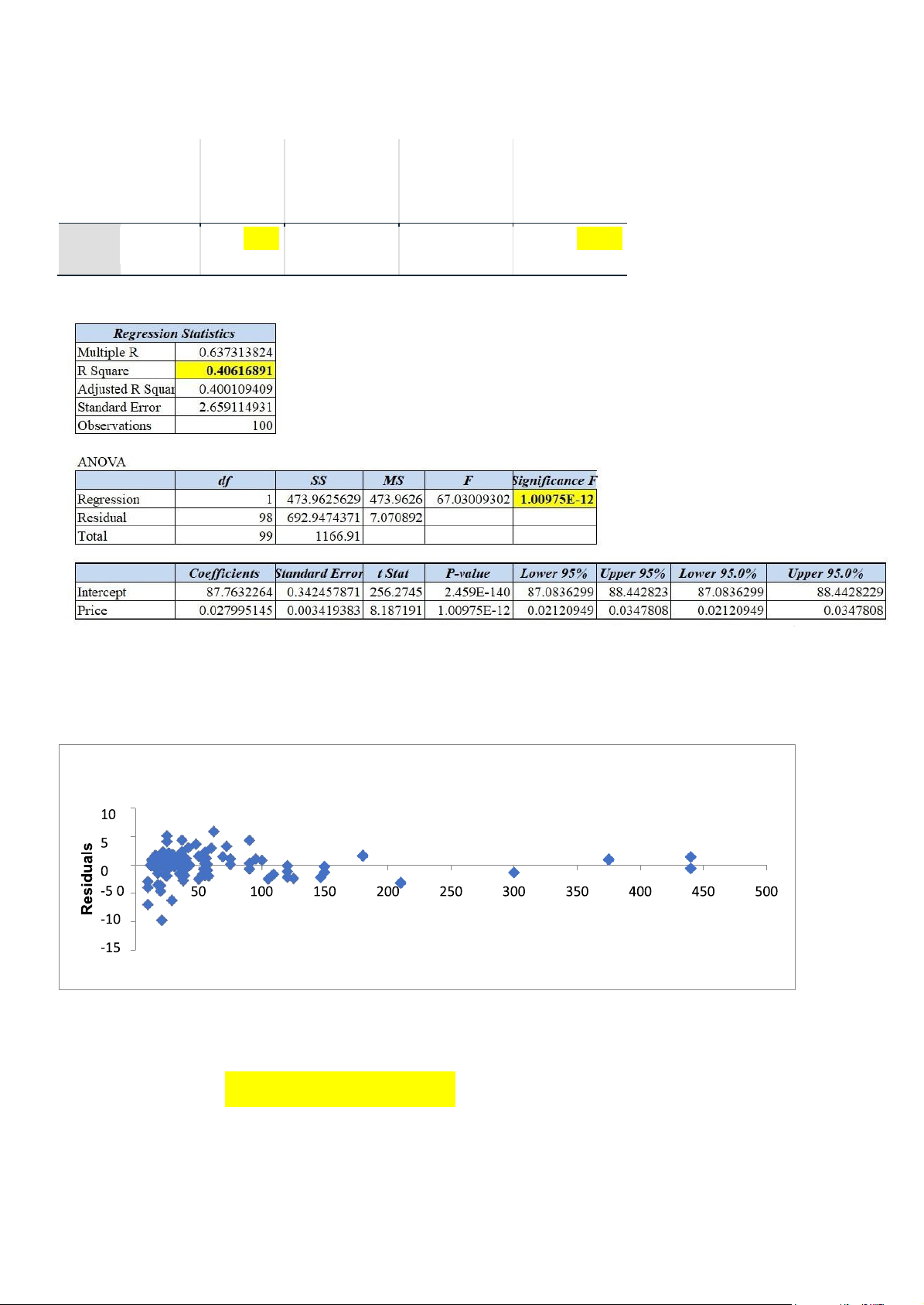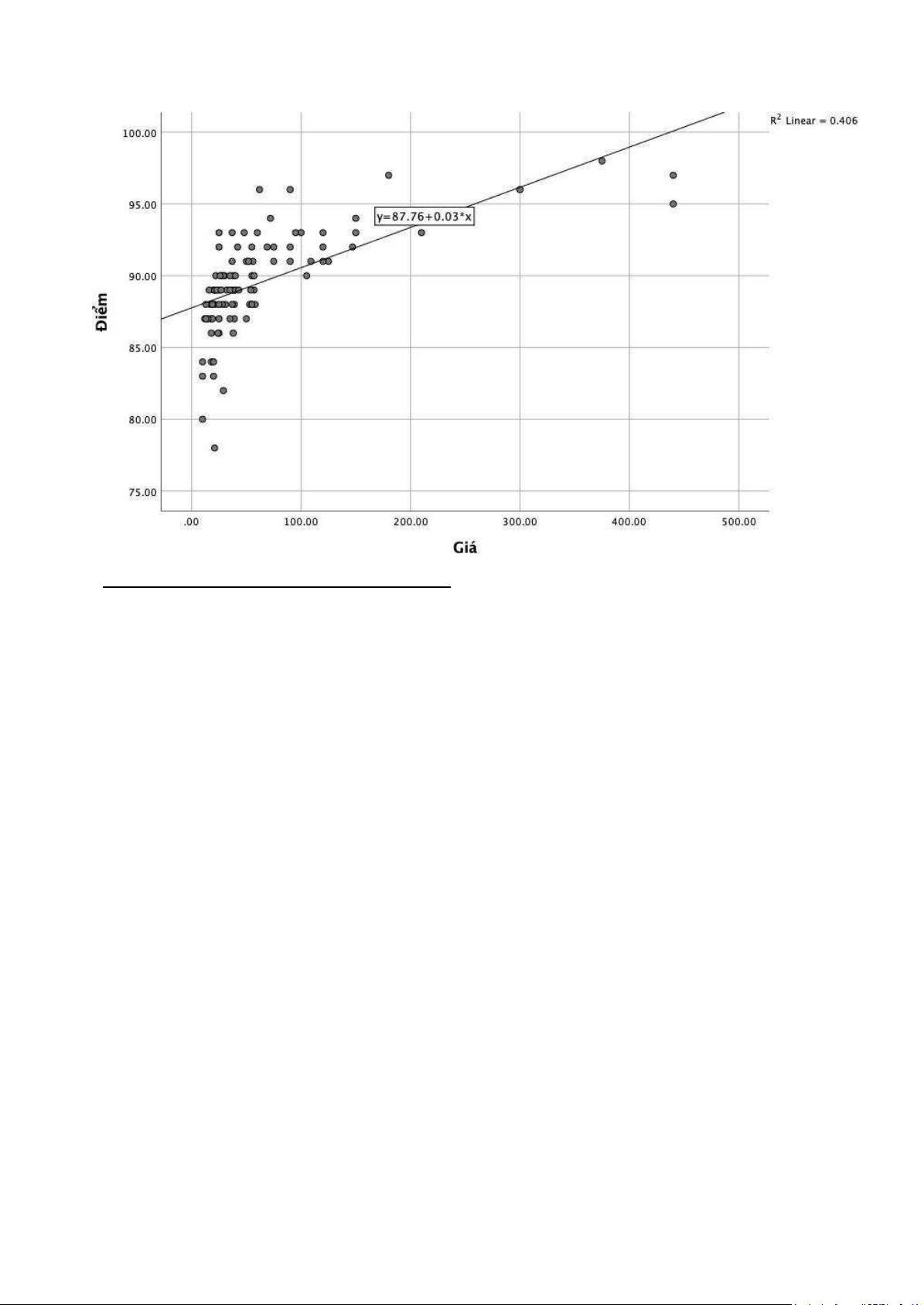 Có hệ số tương quan R2 = 0.406 điều này khẳng định Giá cả và Điểm số có quan hệ tương quan tỉ lệ