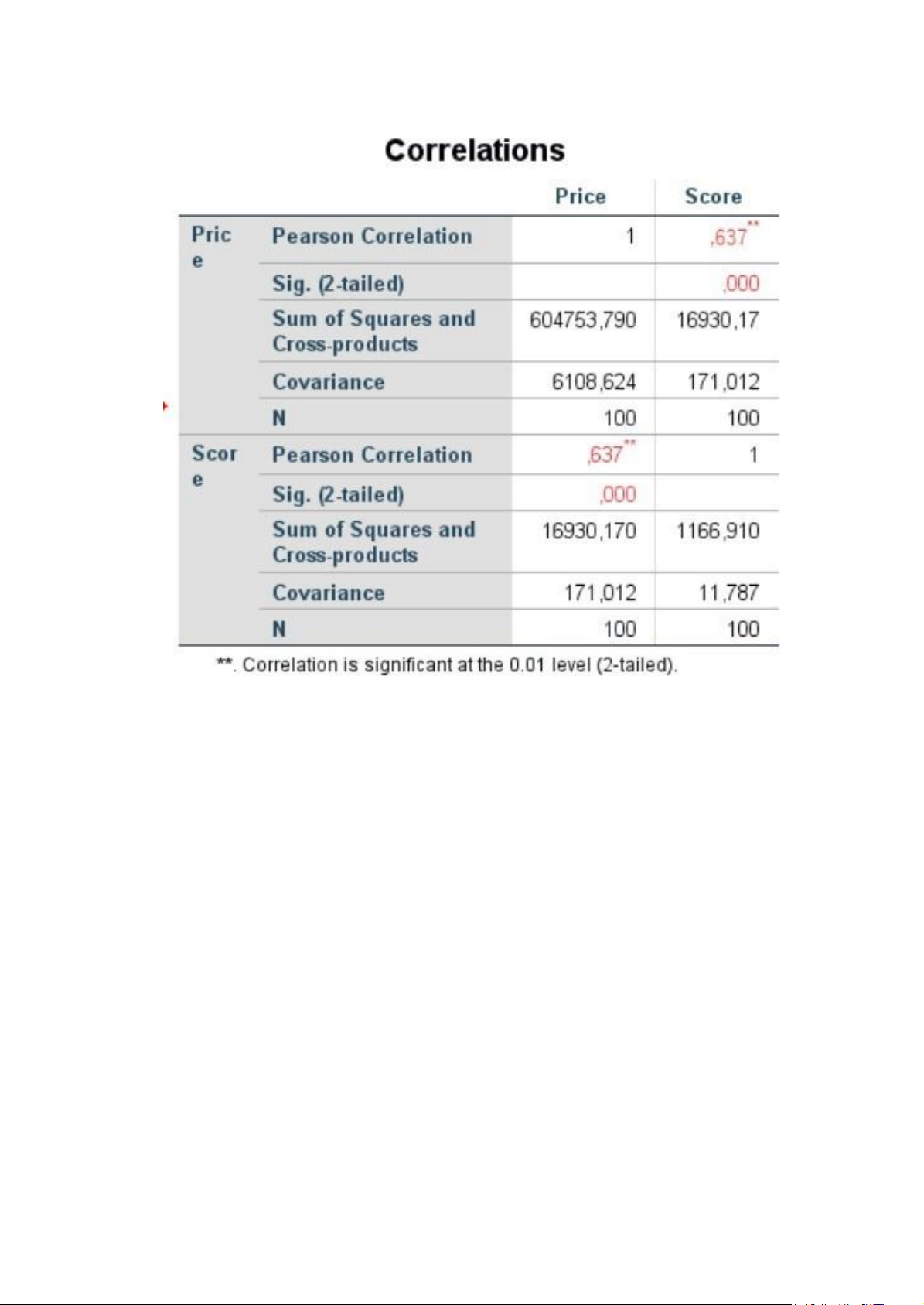 <0.05). Như vậy, mối tương quan giữa Giá cả và Điểm số có ý nghĩa thống kê ở mức độ tin cậy 99%.