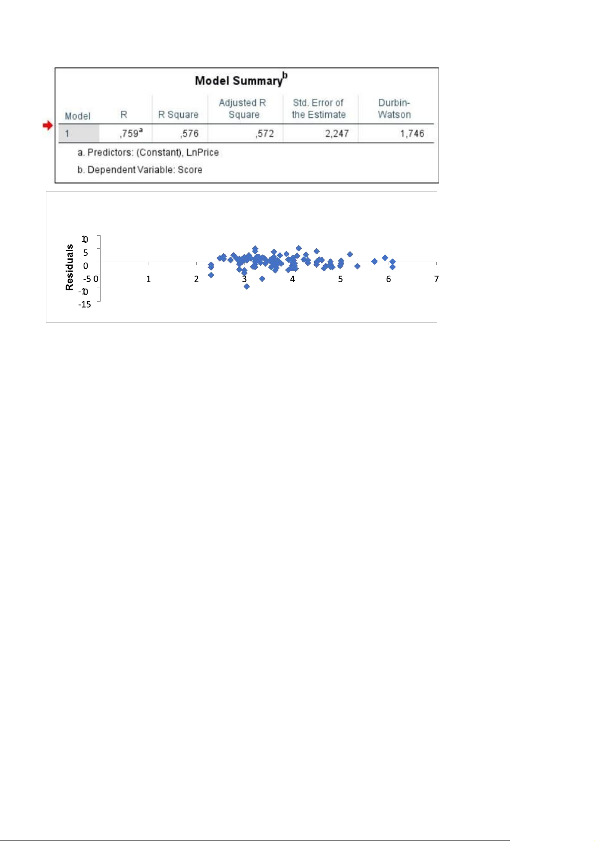 Kết luận: Vậy biến Price có tác động đến biến Score. Mô hình hồi quy với biến độc lập là Giá cả có